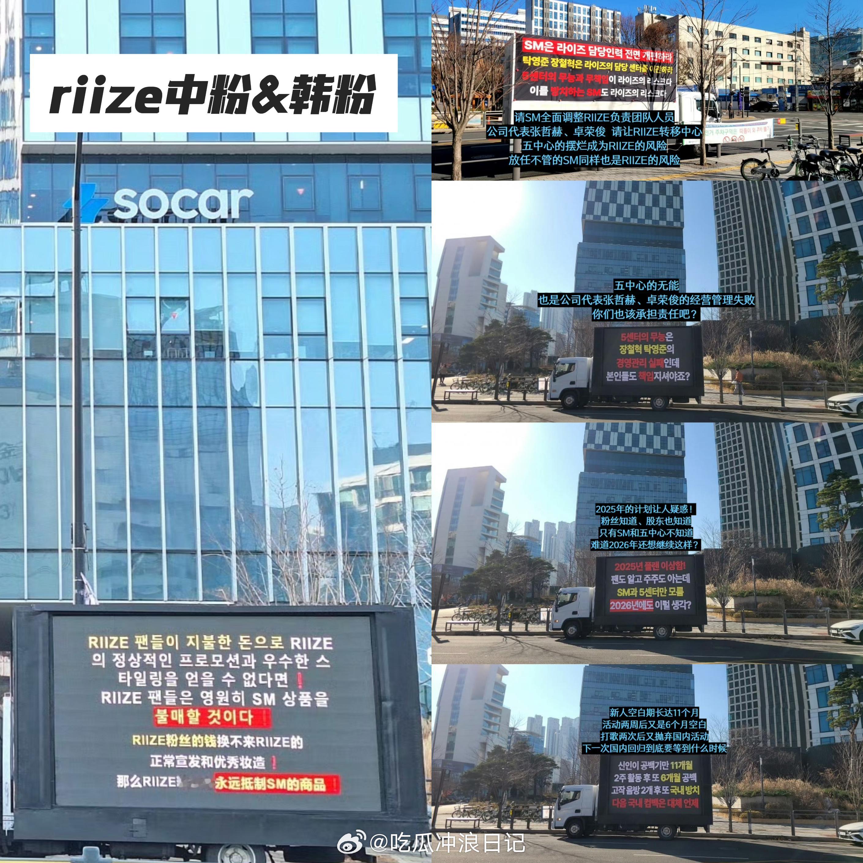 SM大楼 Kpop驾校 短短几天功夫,SM楼下的粉丝维权卡车已经快停不下了,不知道的还以为是kpop新开了个驾校,我宣布开卡车维权是21世纪最成功的营销手段,卡车公司已赚疯 非正式跨年派对 2025娱乐年终盘点