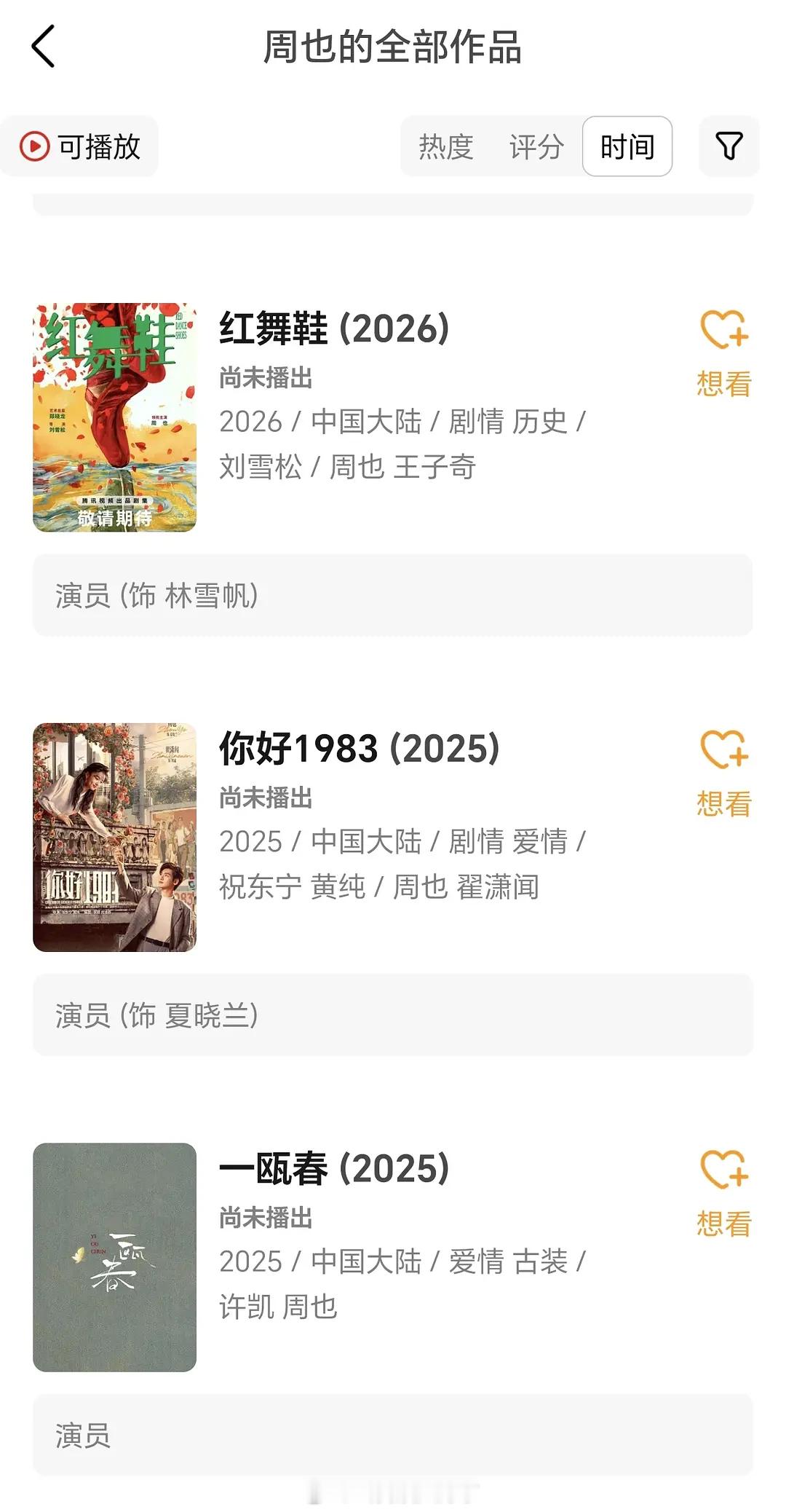 有网友说周也的前途一眼看到头,你好1983是大ip,但预告质感一般,红舞鞋剧组压榨群演、轧4️⃣小🐱,还没播路人缘就是负数了,一瓯春资金不够没拍完,三部剧都是下坡路