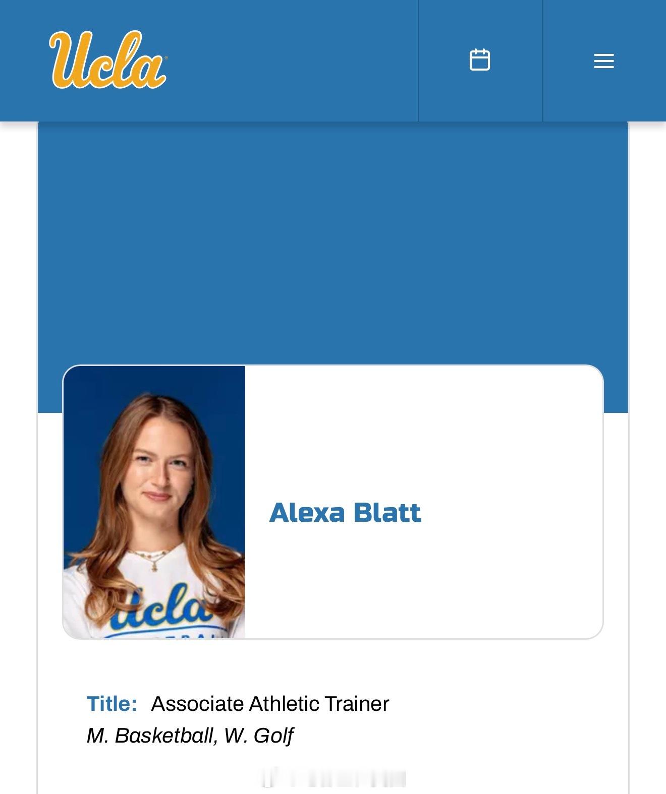 UCLA训练师Alexa Blatt因为在场边为一名受伤球员处理伤情被转播镜头拍到,一夜之间在网络上爆红。Blatt的社交媒体被大量关注和私信淹没,最后只能把账号设为私密。