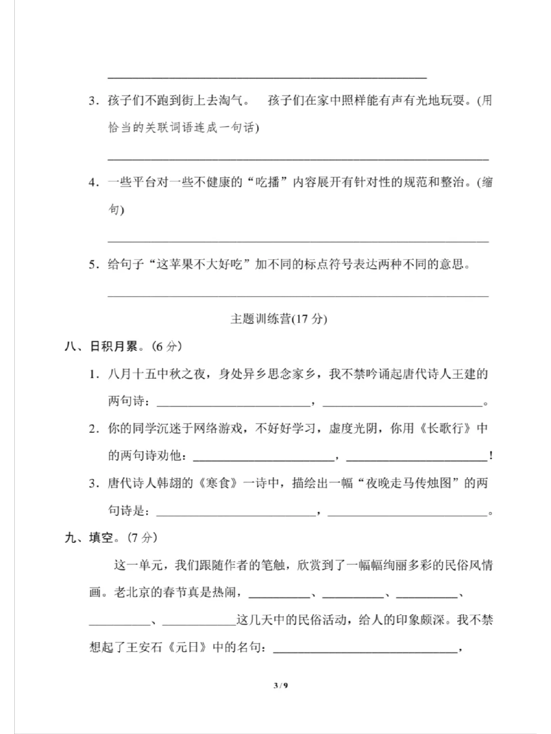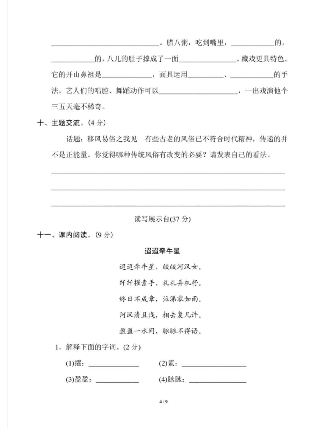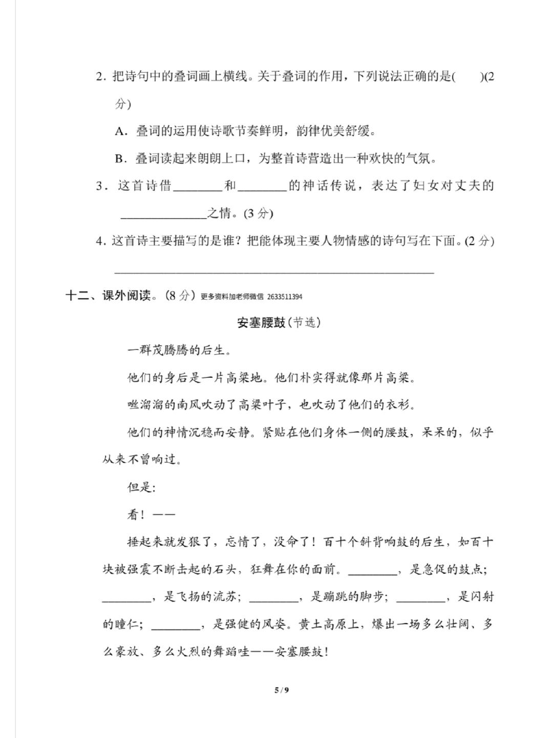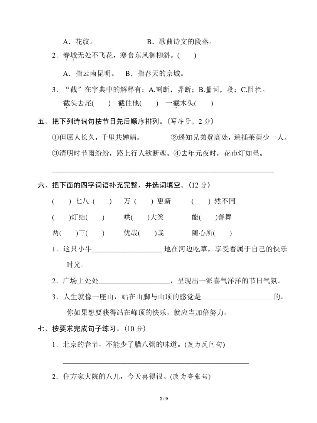 六年级下册语文第一单元试卷