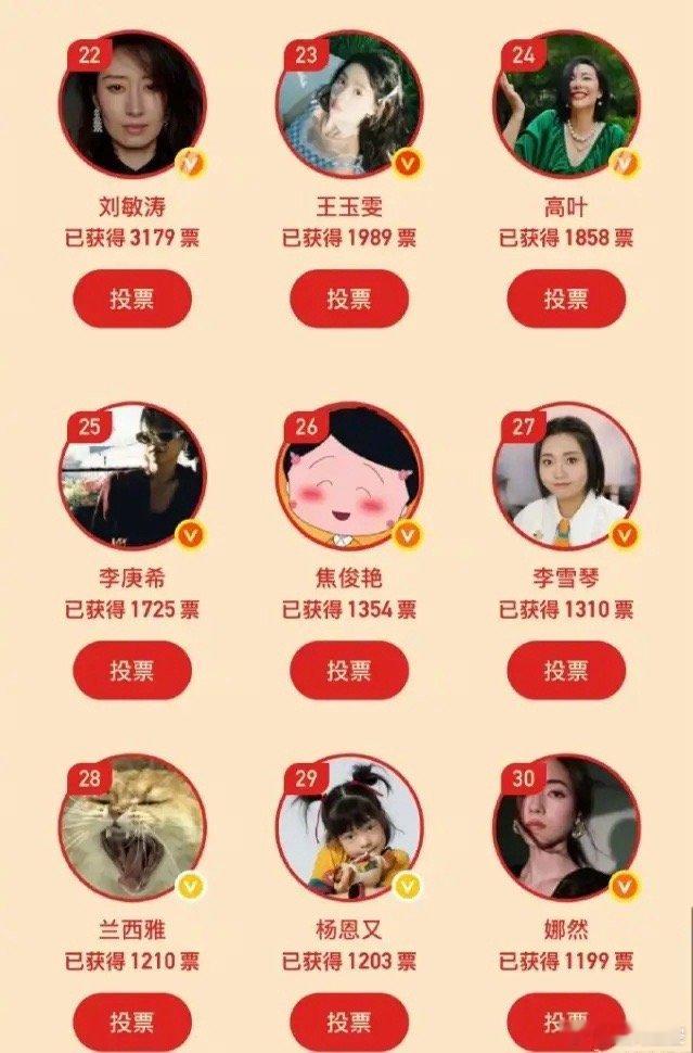 2025票房号召力女演员TOP30名单出炉!第一轮82位女演员入选,30人进入第二轮,排名第一的是赵丽颖,68.75万票,排在第二的是杨幂,11.17万票,排在第三的是陈都灵87174票,排在最后一名的是娜然,1199票,第二到第三十名的票数总和比赵丽颖还要少20多万票,第二轮16日开始投票。