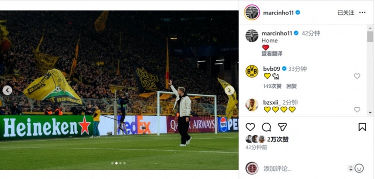 罗伊斯社媒晒出重返多特主场的照片,配文:“家”