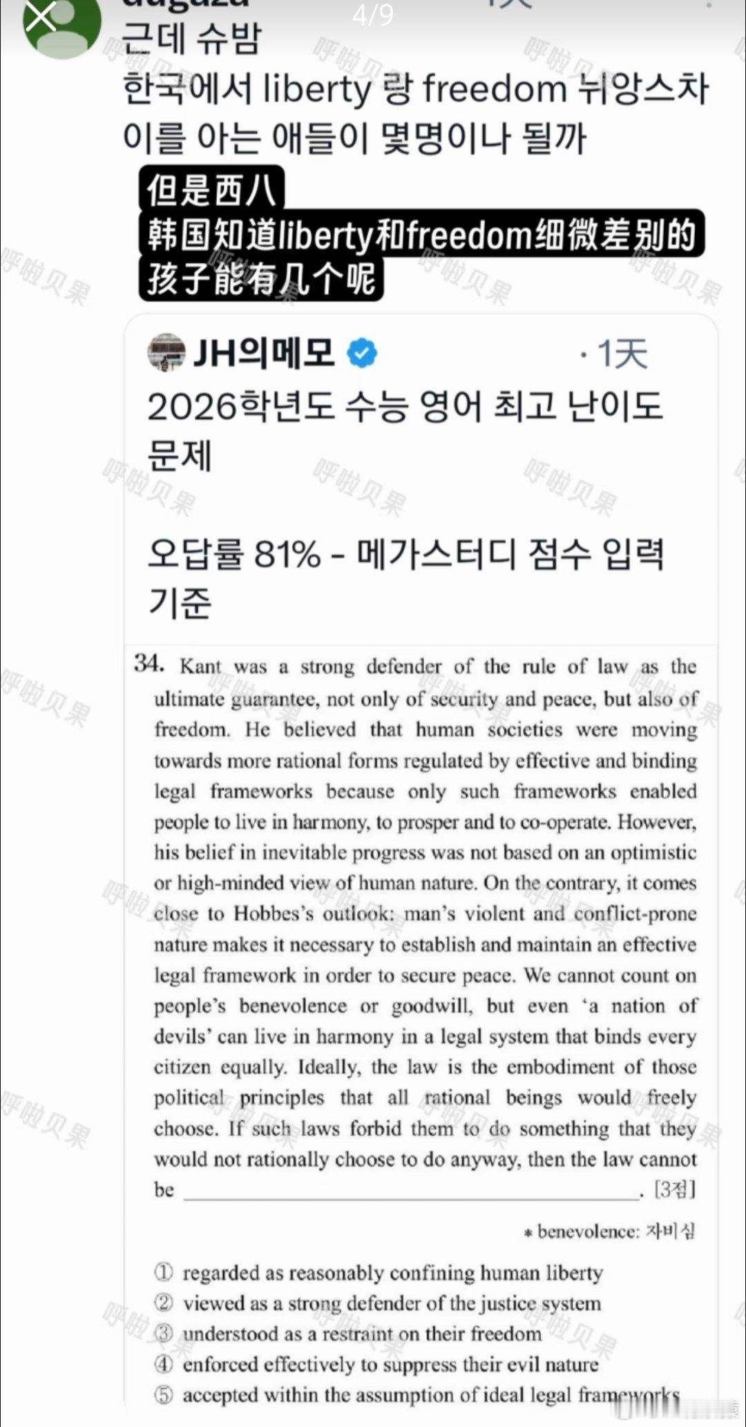 韩国高考命题负责人辞职韩国今年高考英语太难,命题负责人辞职。图三这道错误率据说高