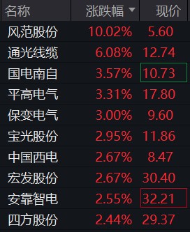 上证报中国证券网讯(记者于祥明)截至12月12日10点30分,特高压概念板块持续活跃,风范股份涨停。国电南自、平高电气、保变电气、电科院、许继电气等个股跟涨。