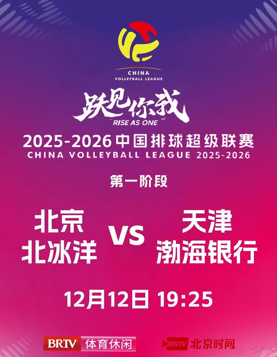 排超联赛北京北冰洋女排12月12日19:30 北京女排 vs 天津女排 排超联赛