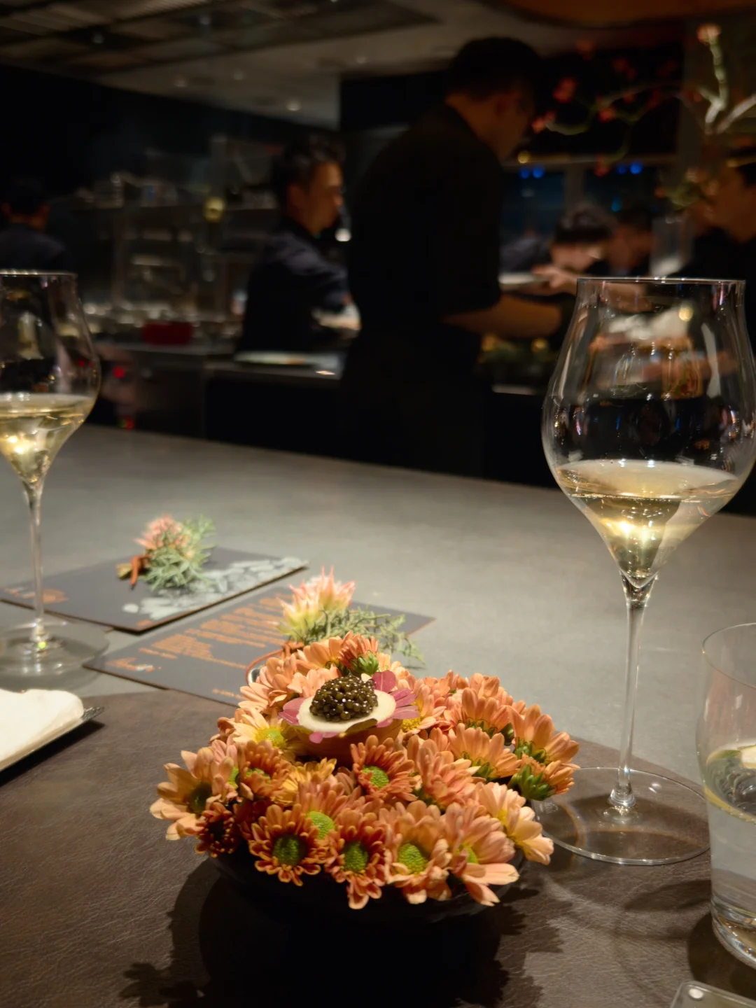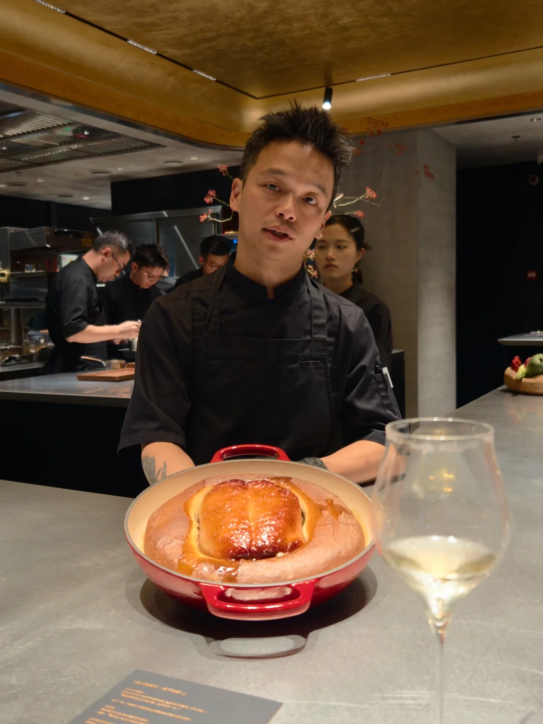 🌸海博鱼子酱做的“小雏菊”咸香碰撞苹果酸甜,酸玉米塔壳里藏着鲜麻花椒味的蘑菇,一口坠入风味森林;