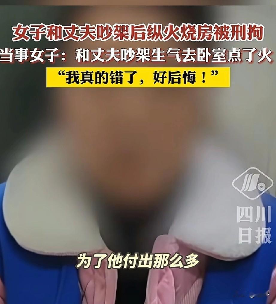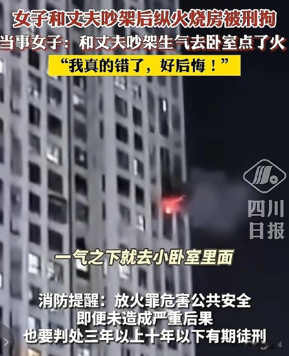 女子和丈夫吵架就点火,不仅烧毁了房子,也毁了婚姻,还给自己整了套刑具。 生活中,别让情绪,烧了生活的全部。和丈夫吵了一架,竟一气之下点燃卧室纵火烧房,一句“我真的错了,好后悔”,终究换不回被烧毁的房屋,也躲不过法律的严惩。 这起事件里,女子的一时冲动,不仅让家庭财产化为灰烬,更触碰了法律红线——哪怕放火未造成严重后果,也难逃三年以上十年以下有期徒刑,若酿成伤亡或重大财产损失,最高甚至会被判死刑。一时的情绪上头,烧没的是安稳的生活,烧来的是无尽的悔恨和法律的制裁。 生活里的矛盾与争吵本是常态,可任由情绪牵着鼻子走,让冲动代替理智,就会把小事酿成大祸。有人因口角挥拳,有人因赌气做出极端选择,最后都只能为自己的情绪失控买单。 情绪是心魔,你不控制它,它就会吞噬你。学会在怒火中掐灭冲动的火苗,在烦躁里稳住内心的节奏,才是对自己、对生活最基本的负责。毕竟,赢了情绪,才赢了人生。 夫妻 婚姻
