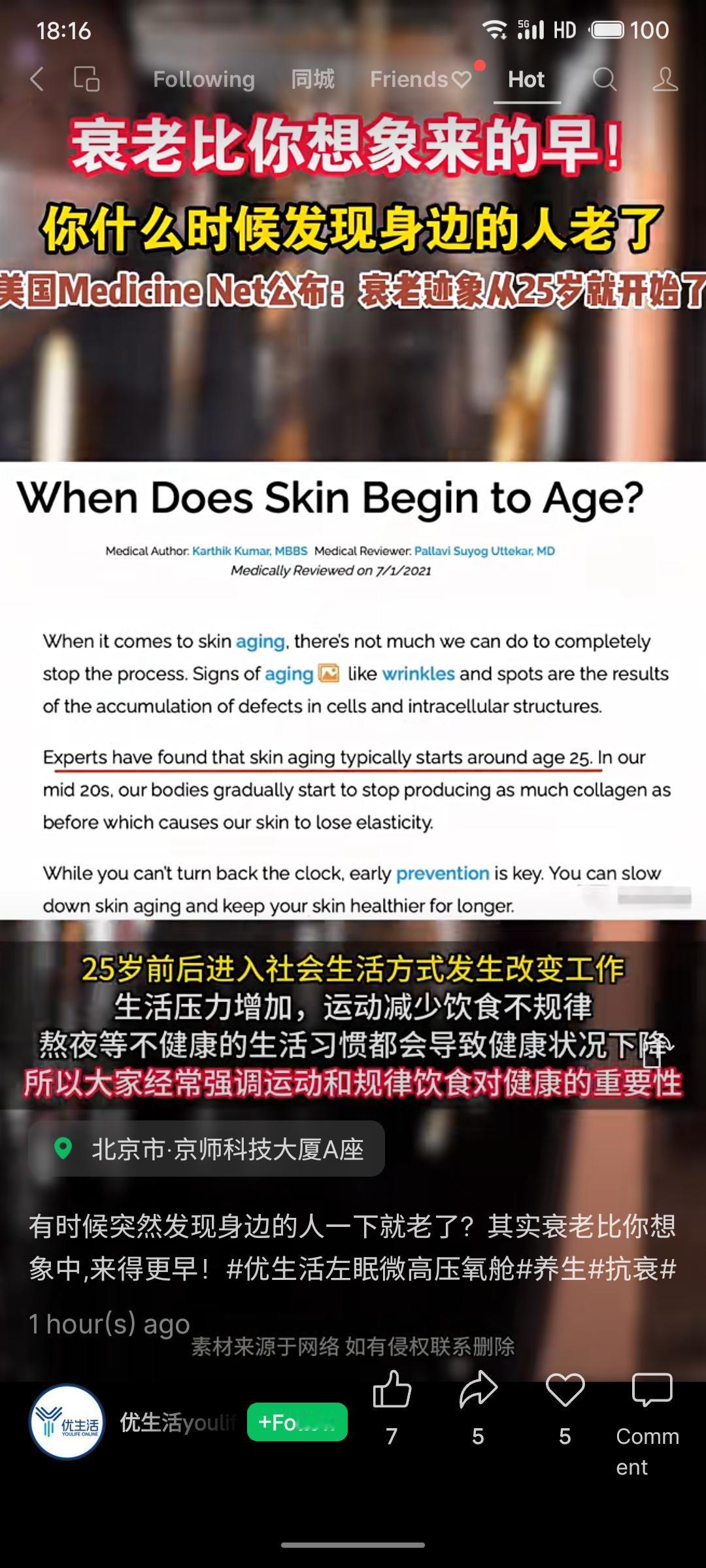 科普皮肤老化自25岁开始,胶原蛋白减少导致弹性下降,强调早期预防的重要性。内容具