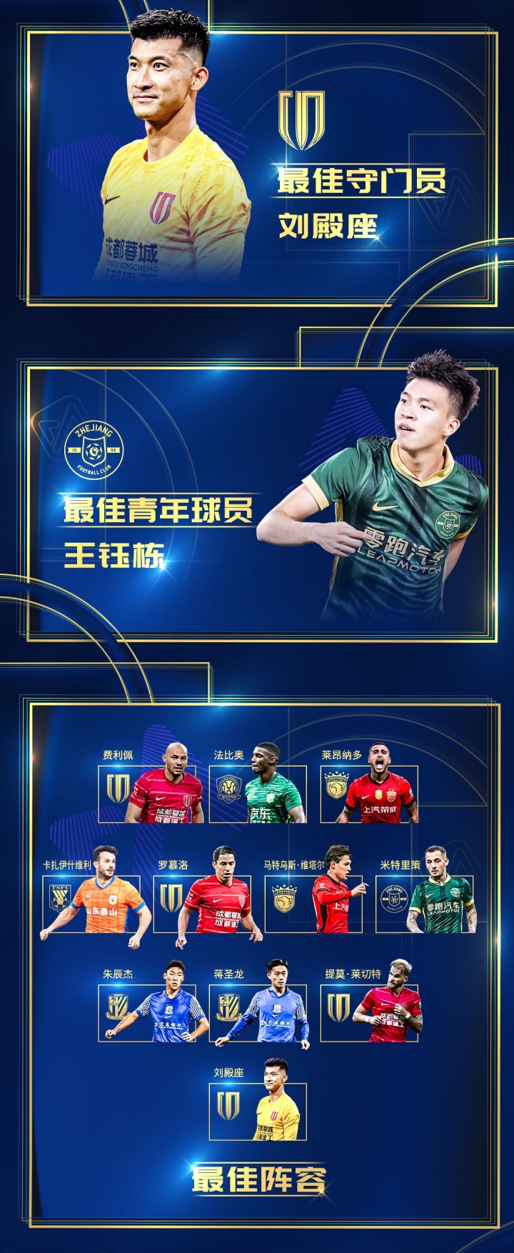 最佳阵容:刘殿座(成都蓉城)、提莫·莱切特(成都蓉城)、蒋圣龙(上海申花)、朱辰杰(上海申花)、卡扎伊什维利(山东泰山)、米特里策(浙江俱乐部绿城)、罗慕洛(成都蓉城)、马特乌斯·维塔尔(上海海港)、法比奥(北京国安)、莱昂纳多(上海海港)、费利佩(成都蓉城)