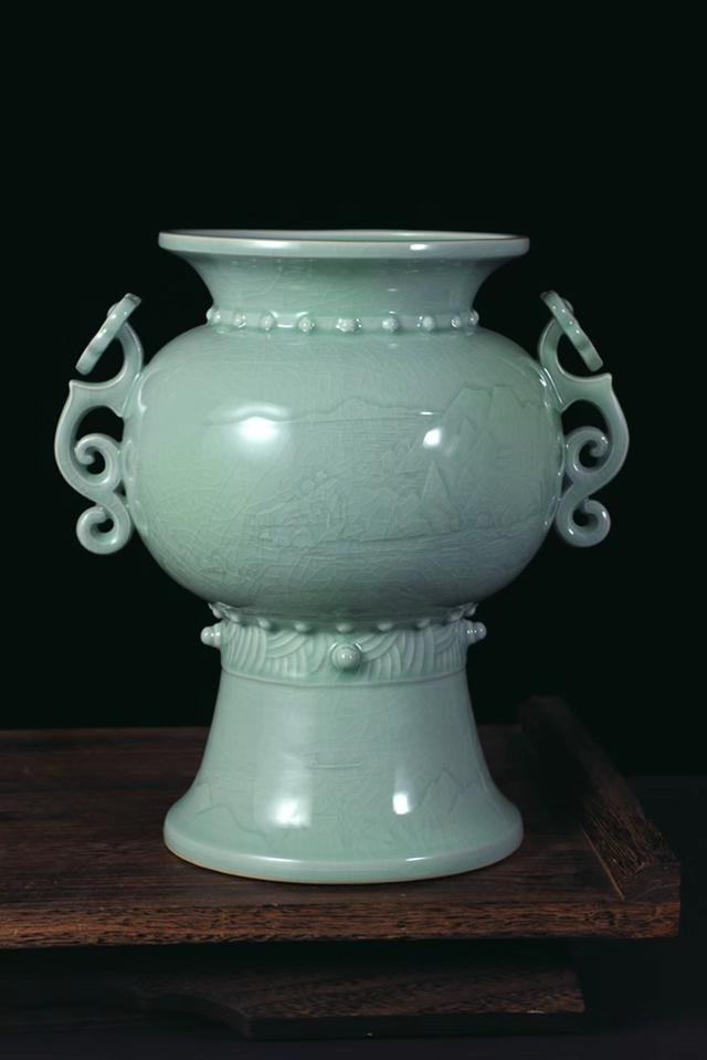 九道宝瓷展厅展示的汝瓷作品(部分)。