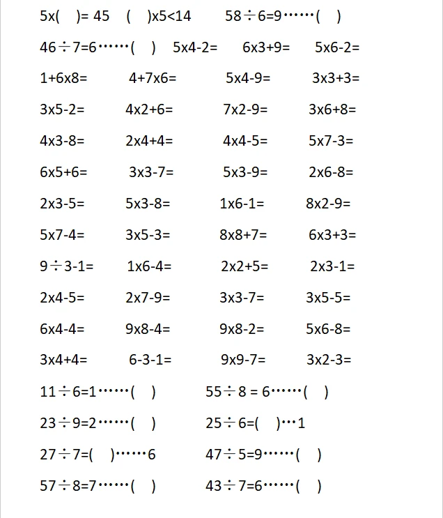 二年级计算1000题—①