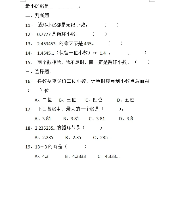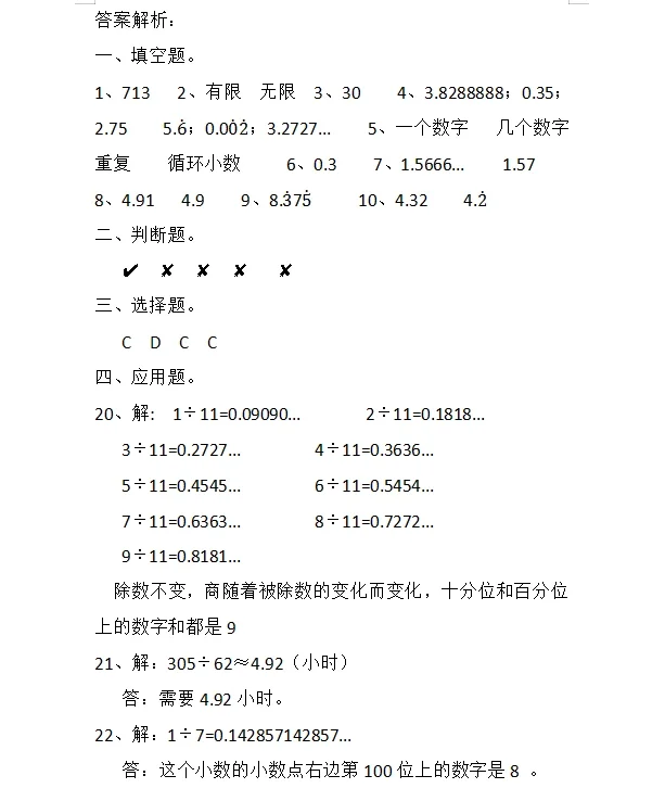 除得尽吗同步测试北师大版五年级上册