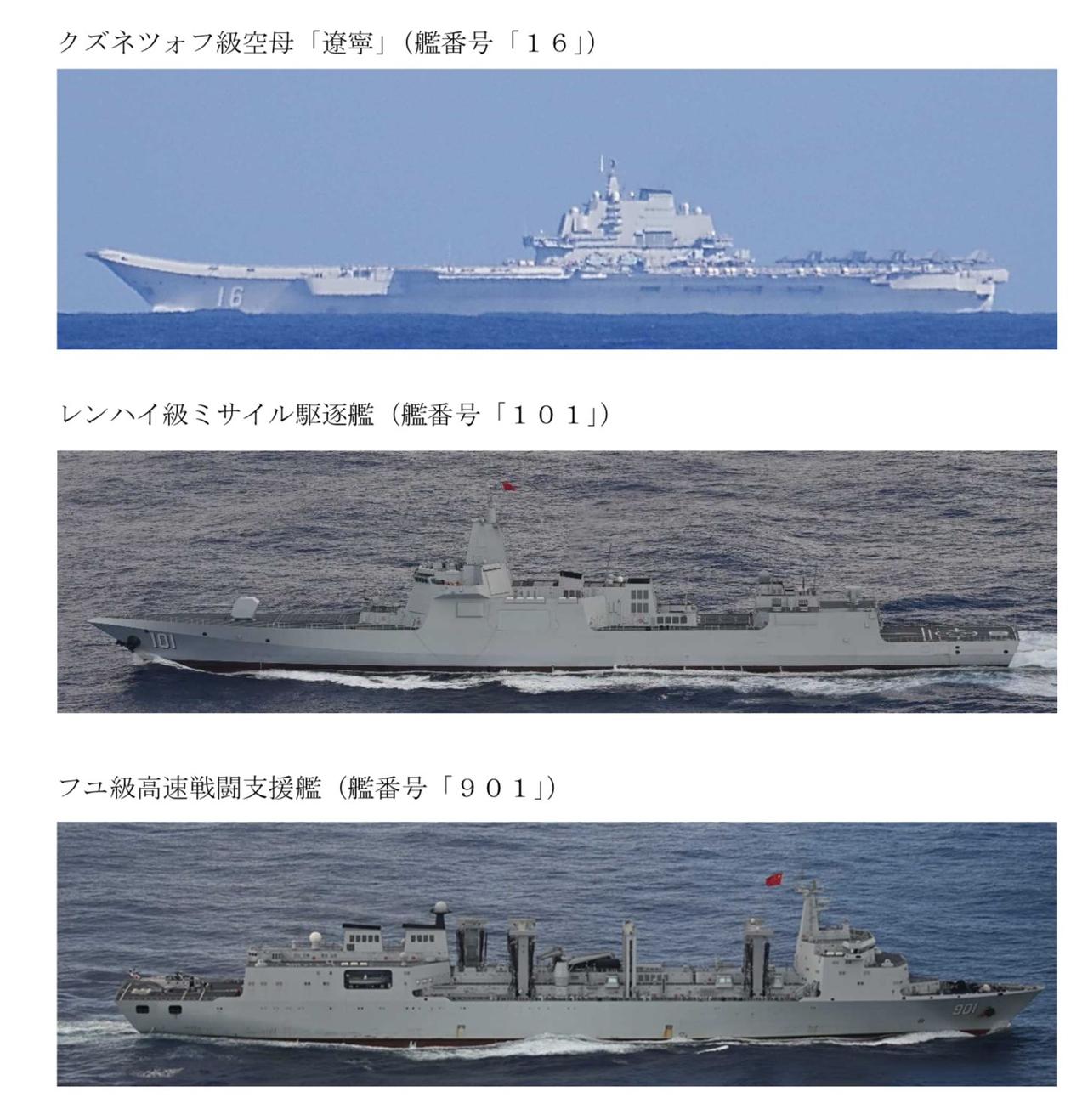 自 12 月 9 日以来,我们已确认包括中国海军库兹涅佐夫级航空母舰辽宁号在内的几艘中国海军舰艇继续在太平洋水域航行。 此外,12月6日至12日期间,辽宁号航空母舰上舰载战斗机和其他飞机的起降次数约为260次。 此外,12月12日,证实包括库兹涅佐夫级航空母舰辽宁号、仁海级导弹驱逐舰、两艘旅洋Ⅲ级导弹驱逐舰和扶余级快速战斗支援舰在内的共五艘舰艇,从冲绳岛和宫古岛之间的海域向西北方向驶去,前往东海。 国防部和自卫队将继续进行监视和情报收集工作。辽宁舰编队 中国航母辽宁号 辽宁号航母海试 尼米兹级航母 大连舰 日本母舰 库兹涅佐夫号