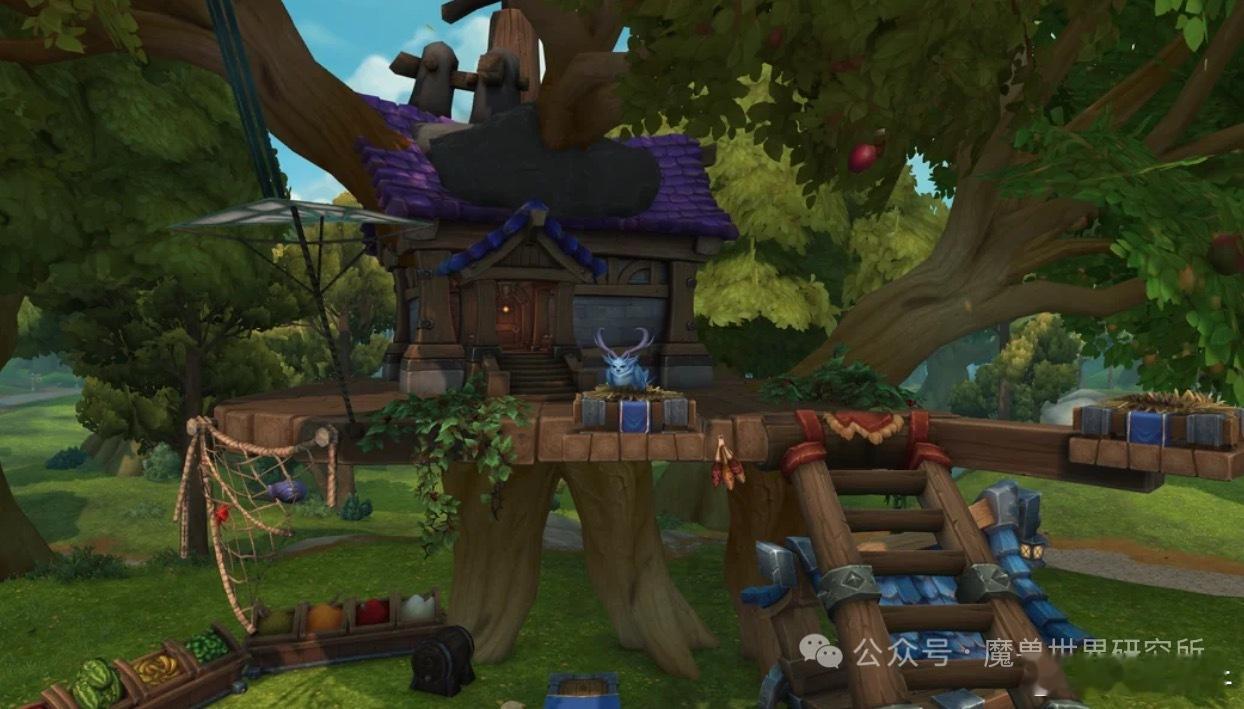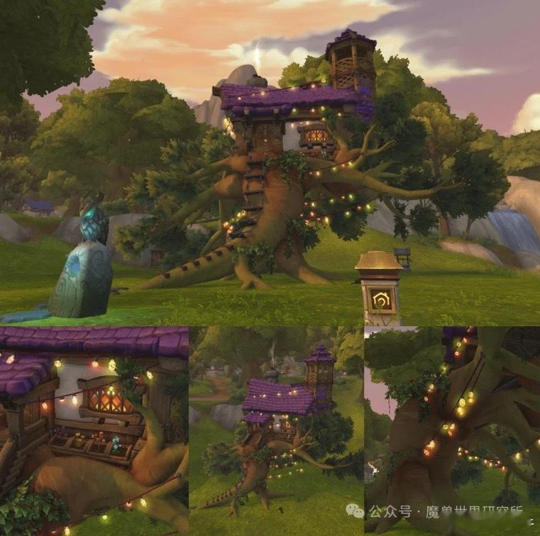 每周魔兽家宅汇总分享图1 玩家打造了一座飞行房屋,远看还真挺像个副本的图2 有玩家打造了一个熊猫人酒馆图3 另一座德鲁伊的树屋,风格则要喜庆规整得多,但毋庸置疑,它依旧藏身于繁茂的树冠之间。从挂满的灯饰来看,这里大概率是一只月神祭司枭兽的温馨小家。图4主打隐身风格的设计,把焦点完全放在树木本身!图5 这只枭兽形态的德鲁伊,直接把巢穴筑在了自家树屋门外图6 经典款树屋,走的是朴实无华的路线魔兽世界魔兽世界