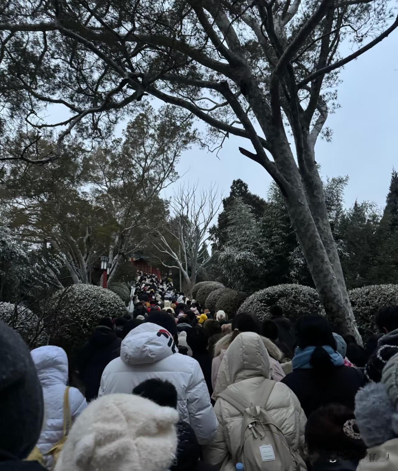 北京今年第一场雪来得超实在,雪量给足了仪式感,可兴冲冲去景山赏雪,才发现美景里藏着不少“小惊险”,近期要去的小伙伴,一定要把安全放在第一位! 本想登景山俯瞰雪后故宫,没成想刚到山脚下就傻了眼——热门果然名不虚传,上山的路直接排起长队,还得限流分批进,想快点登顶赏景根本没门。 更让人揪心的是路面,雪一化再结冰,走起来滑得像踩了“冰场”,一路上看见好几个游客没站稳摔在地上,看着都疼。问了景山工作人员才知道,因为园区里有文物古迹,怕撒盐腐蚀,所以大部分路面都没法撒盐,只在少数关键位置撒了点土防滑,尤其是山上的楼梯,几乎全结了冰,踩上去一步一挪,必须紧紧抓着扶手。 所以真心提醒近期要去景山赏雪的小伙伴:别光顾着拍美景,一定要穿防滑鞋,上下楼梯慢慢走,千万别着急,安全比啥都重要!