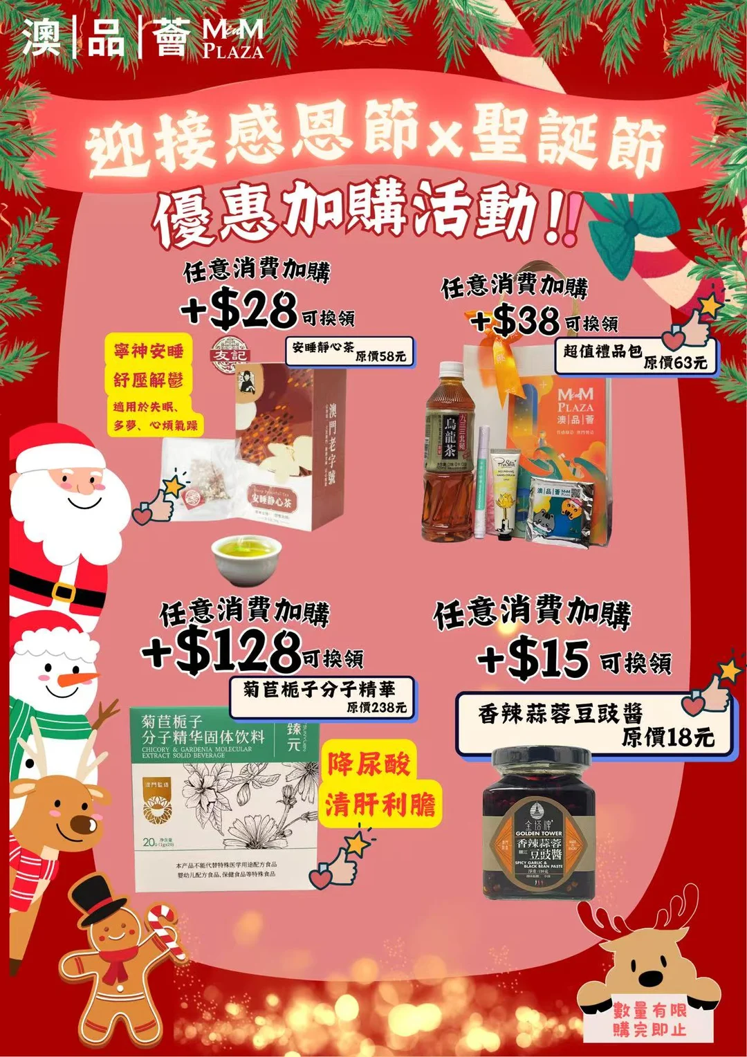 ③迎接感恩节×圣诞节优惠加购活动:任意消费加购MOP28可换领安睡静心茶