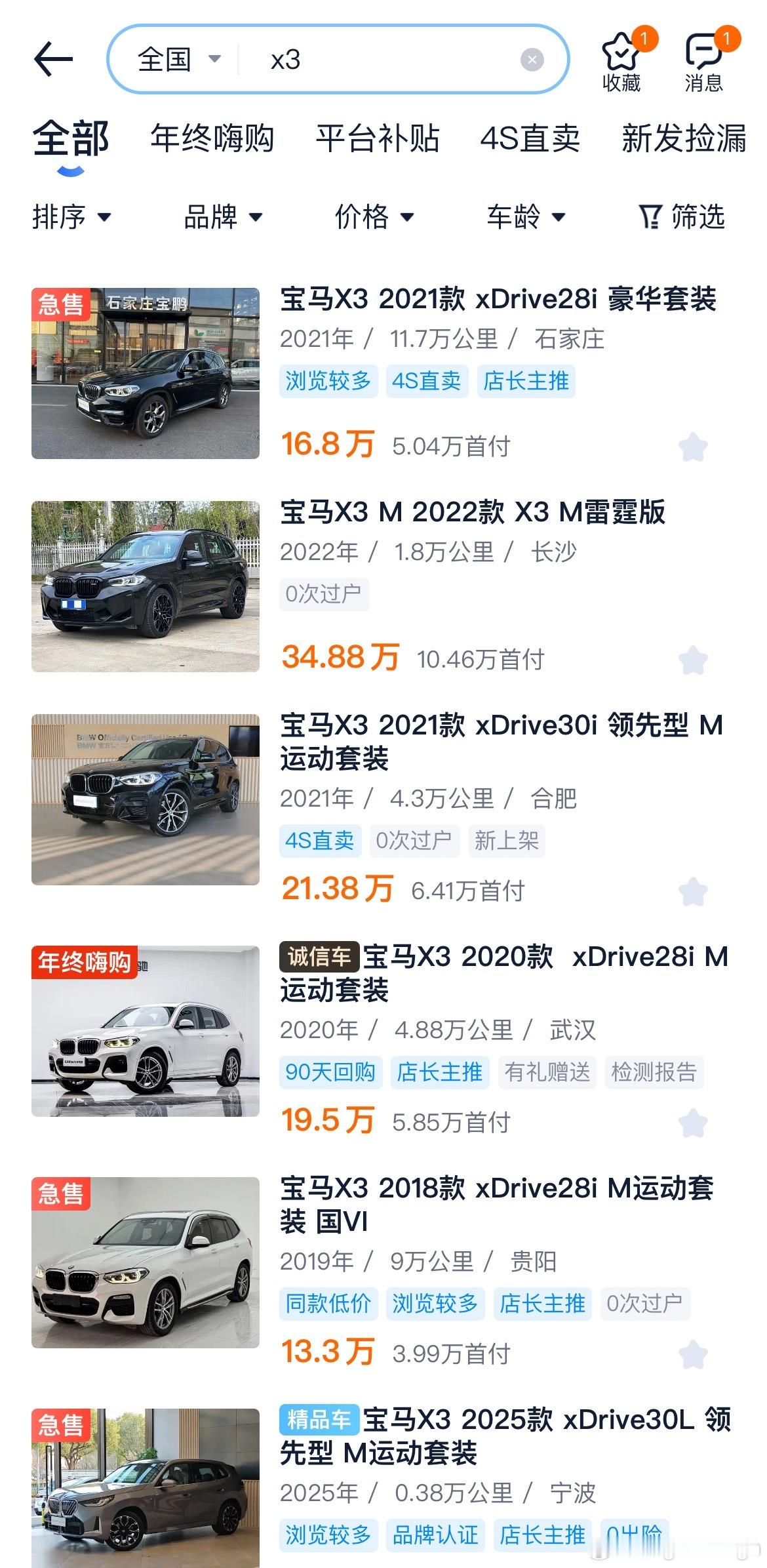 二手的宝马iX3好香啊看了一圈,基本两年就掉价一半,24年上牌的车价格还在22到25左右,而到了22年上牌的车,基本就是13到16了。同样的价格,买汽油版X3的年份至少得多一倍这车除了偶发的“传动轴故障”,其他没问题,也有很多解决方案。续航非常扎实,比奔驰EQ的强多了买一台iX3,给他改成X3M的感觉,真挺帅的!上几个帅气的网友案例或者改成Alpina XD3就更骚了!