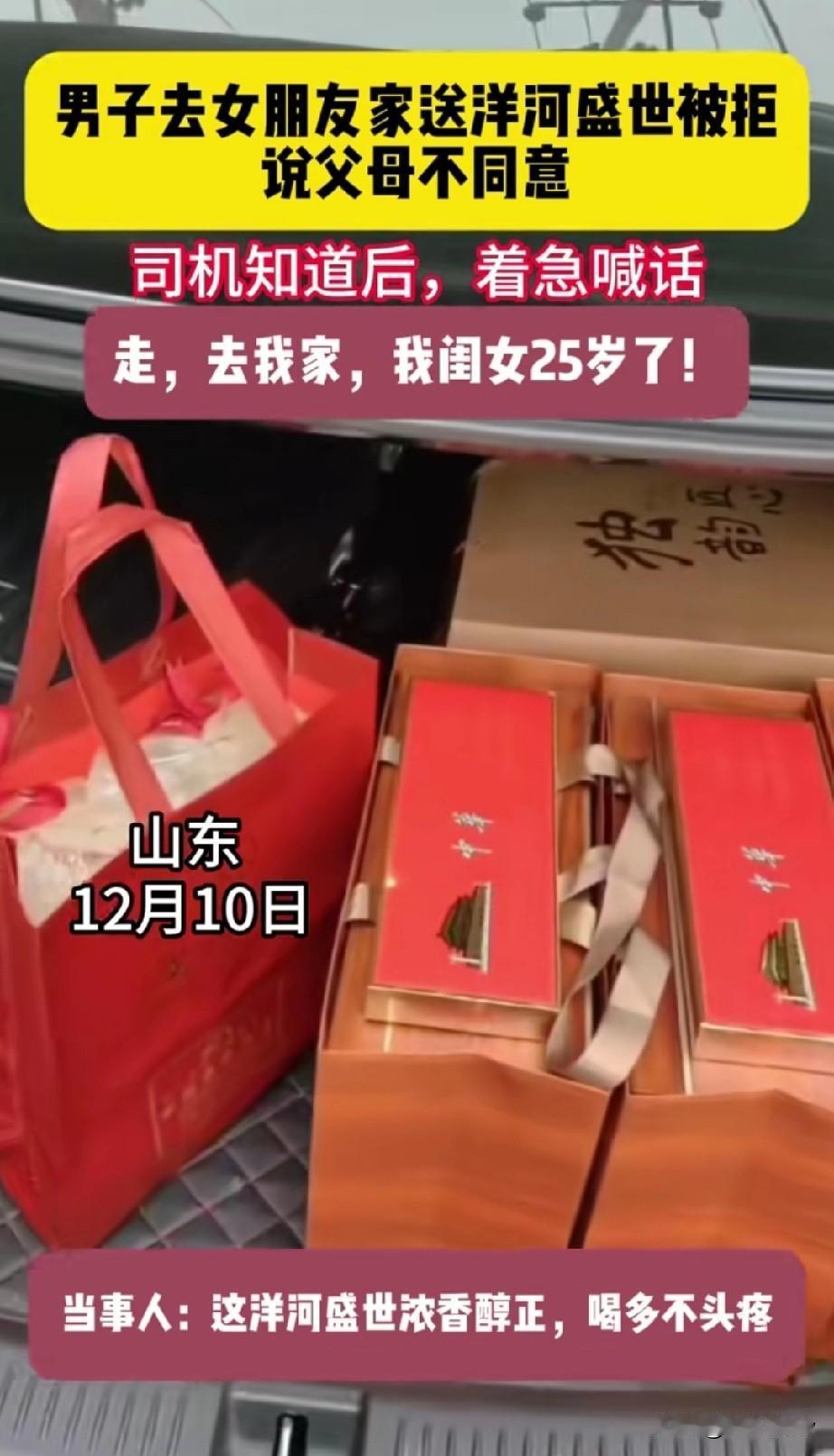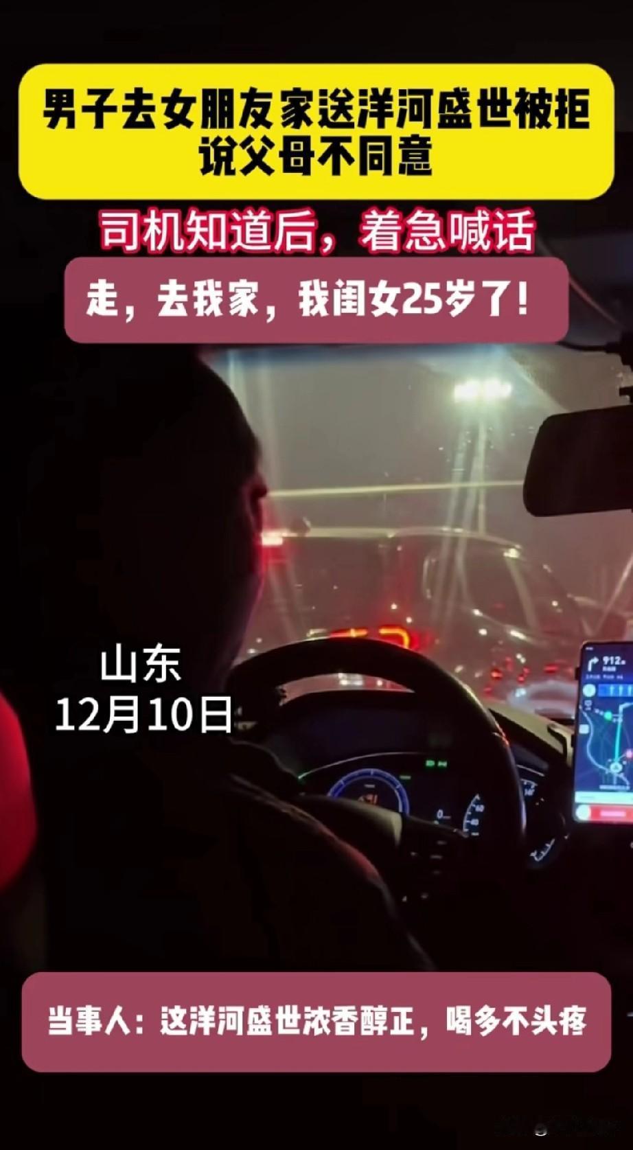 笑不活了!小伙提酒提亲被拒,坐个出租车竟把媳妇“捡”回家 家人们谁懂啊!山东这小伙的经历,简直比电视剧还离谱! 12月10号,山东一小伙兴冲冲提着洋河盛世酒,直奔女友家提亲。谁成想女友家长头摇得像拨浪鼓直接给拒了!小伙的心瞬间凉透,蔫蔫地打了辆出租车准备返回家。 出租车大叔看他一脸丧气,随口问了句咋回事。小伙一股脑把委屈倒了出来,说自己和女友恋爱很久了,该到谈婚论嫁地步了,今天去上门见家长结果热脸贴了冷屁股。女友家长死活不同意这门亲事。 没成想,司机大叔听完激动的一拍大腿:“小伙子,别愁!走,走去我家去!我闺女25了,正好单身!” 小伙当时就懵了,结结巴巴问:“大、大叔,你闺女能愿意吗?” 司机大叔大手一挥,豪气冲天:“愿意!我说了算!” 哈哈哈,这剧情反转得也太快了!真是有心栽花花不开,无心插柳柳成荫啊!本来以为是场失恋大戏,结果直接演成了相亲喜剧。 咱就是说,缘分这东西真的太奇妙了!说不定小伙这趟“被拒之旅”,就是为了遇上真正的缘分呢! 祝福这小伙,希望他和司机大叔的闺女能有个好结果!