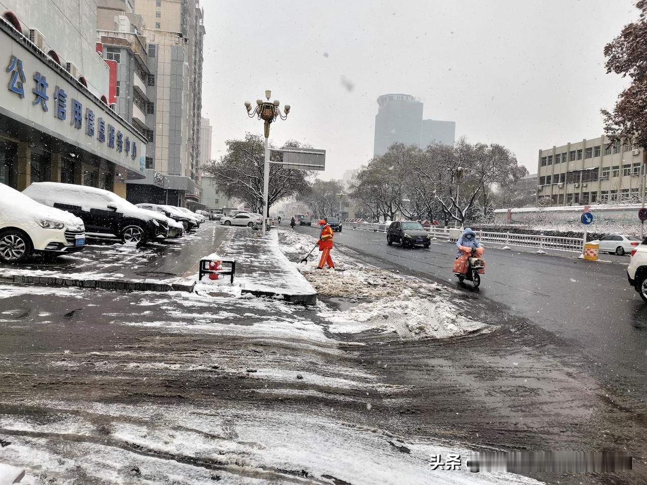 美丽的雪景,寒风中劳作的环卫保洁工人,向她们致敬!