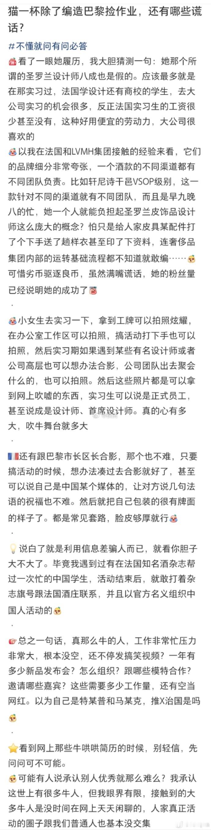 猫一杯转世账号被关闭秀才借账号变相复出账号被关闭 起初看到猫一杯这个名字,想起来的是那种杯中之猫,可爱漂亮吸引人,然而必然也是格局不大——在精心构筑的“杯”(人设、滤镜、剧本)中展示一种精致但狭隘的世界,天地广阔而自己必需坐在杯中,借助重重矫饰。造假并非首次。“广州白云机场丢手机”“中国基建队赶工修复巴黎圣母院”“自己是YSL设计师”等内容,均被网友质疑是编造脚本,炒作。之前胡编乱造,有收益,无处罚,逐渐胆子变大。违规成本太低,而流量带来的利益诱惑太大。🔥代表一个上蹿很快。信息流动加速、外部变化多,对个体创作者而言,但凡能抓住机会的人就能够一招先。但是离运里的崩塌的速度和坠落的高度同样惊人。靠猎奇、情绪操控、虚构剧情就能轻易攫取红利未来已经不太可能了。真正的、可持续的影响力,必须建立在真实、专业和长期价值之上。