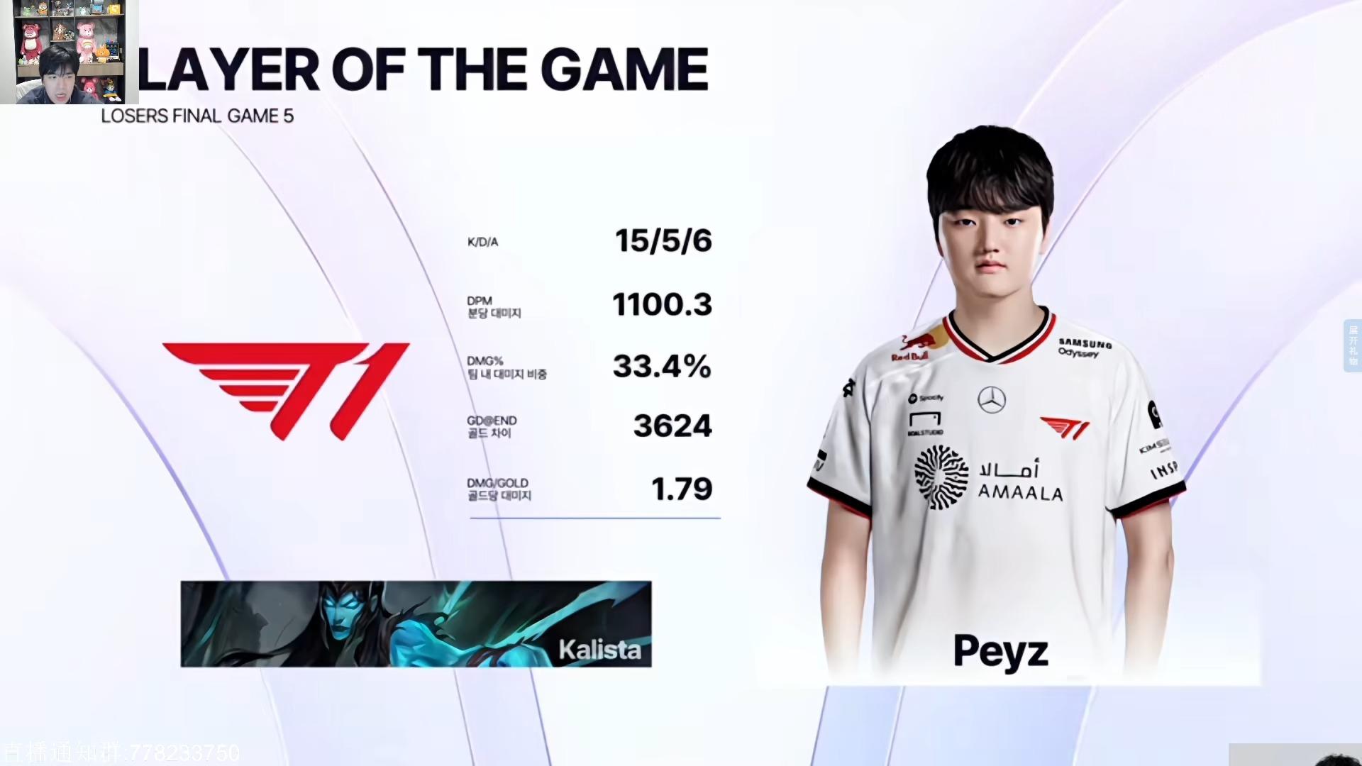 Peyz卡莉斯塔砍下15/5/6的战绩,拿下T1对阵DK第五局MVP