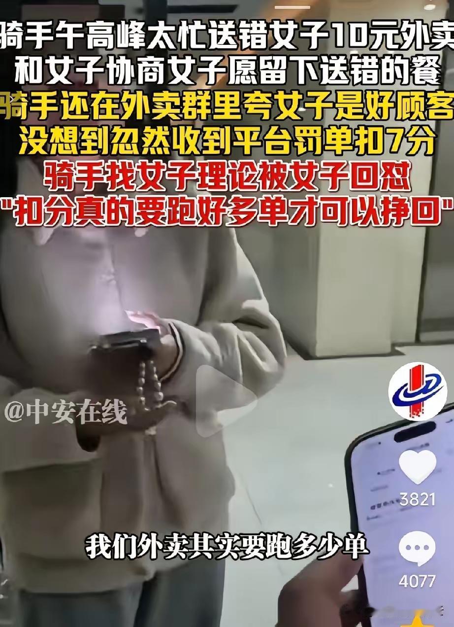 说实话,骑手不容易。 但是,骑手提供的解决方案,明显也诚意不足,无论选哪个,对下单的人来说,都有损失。 所以,这种结果的出现,是有一定可能性的,不要怨别人,别人没有义务为你的错买单。