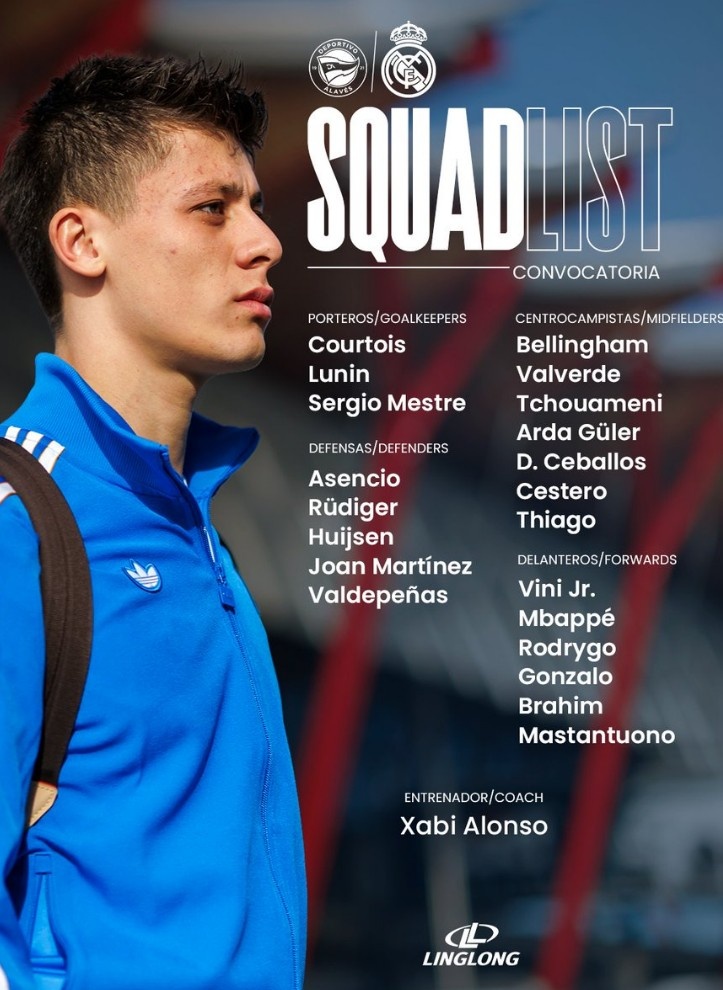 直播吧12月13日讯皇马将在本轮西甲迎战阿拉维斯,球队官方也公布了本场比赛大名单,姆巴佩在列,赫伊森伤愈回归,卡雷拉斯、弗兰·加西亚停赛。具体如下: