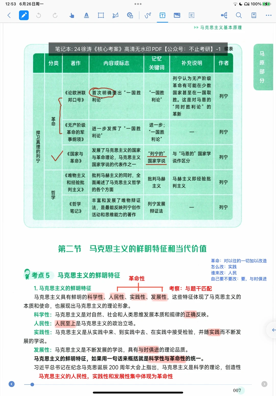 核心考案 考研政治徐涛 徐涛笔记