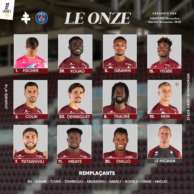 虎扑12月14日讯法甲第16轮,梅斯主场迎战巴黎圣日耳曼,赛前双方公布首发名单: