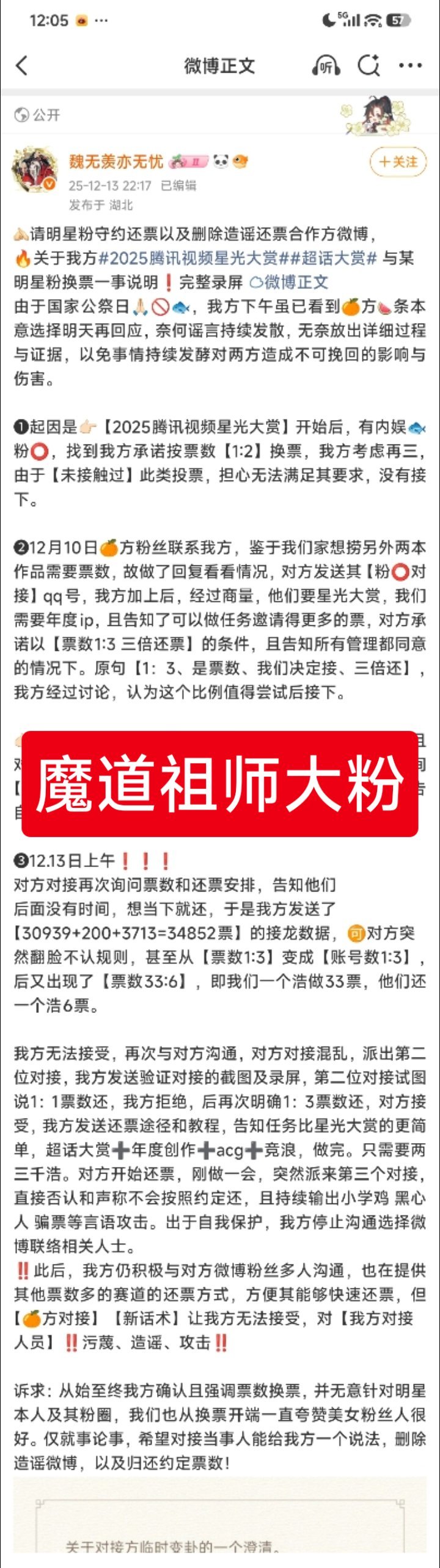 星光大赏投票 星光墙 关于腾讯视频星光大赏,魔道祖师与鞠婧祎家换票事件,到底是职业80还是行业黑产啊? 527人投3.5万票。