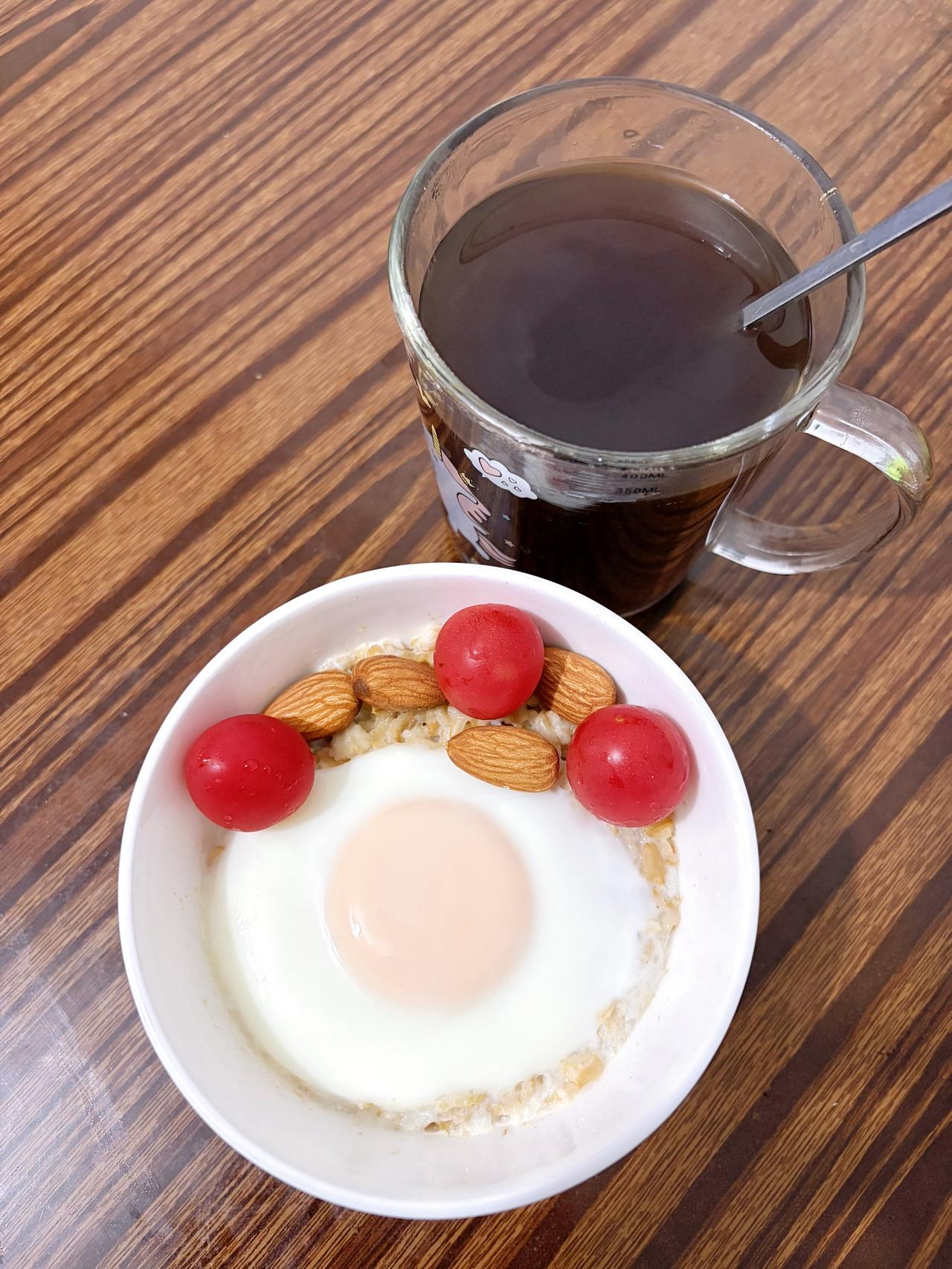 泪水打湿我的减脂餐,什么时候下107斤呀 今日体重:107.3斤⬆️0.3斤 今日减脂早餐:牛奶燕麦+鸡蛋+坚果+番茄+黑咖啡