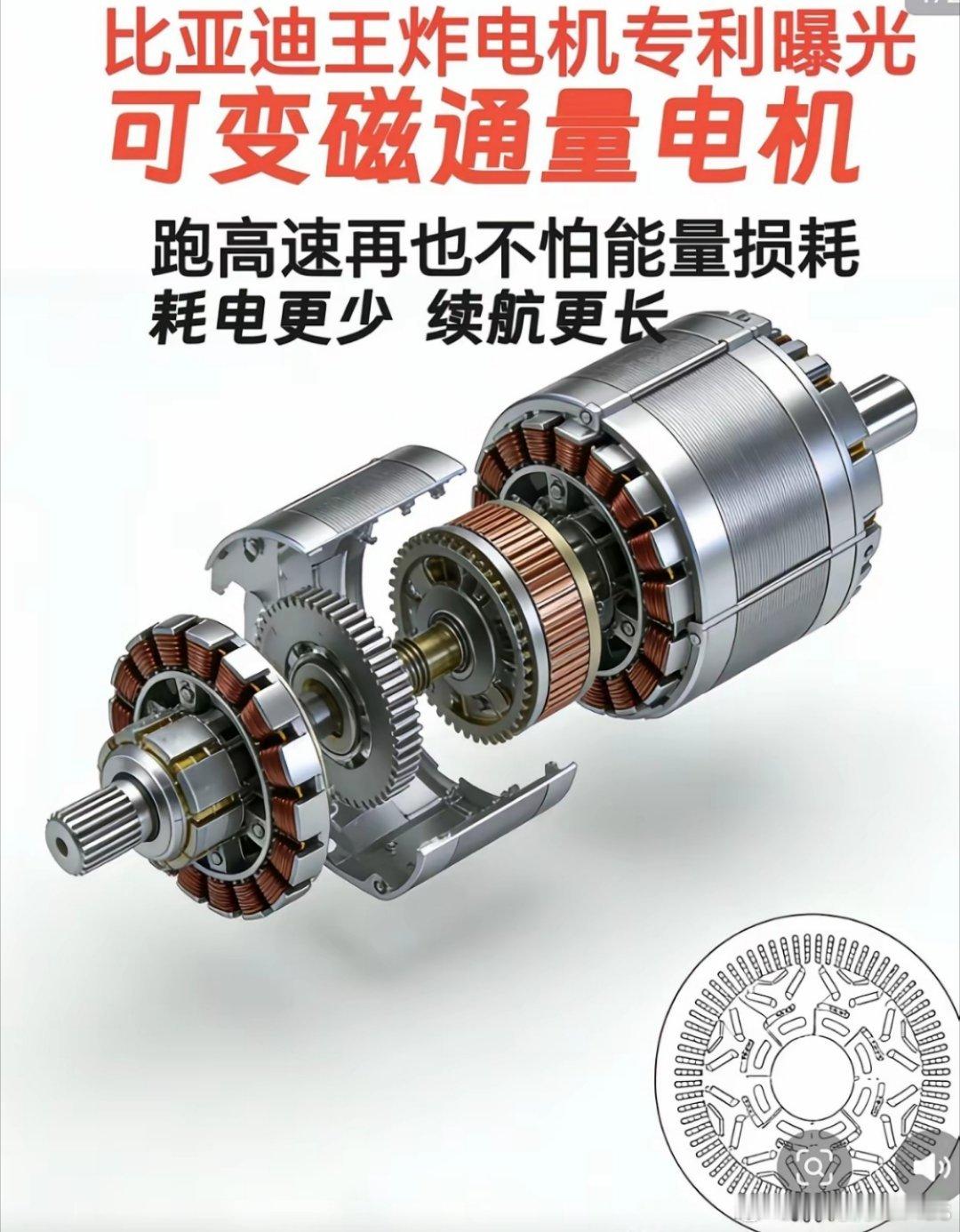 比亚迪的可变磁通电机,绝对是一款王炸产品,要知道目前新能源汽车使用的传统永磁同步电机,它就像只有一个固定档位的发动机。起步非常有劲,中速高效,但但是只要冲上高速,电机就只能靠‘硬扛’——转速越高,磁场越强,反电动势越大,电流进不去,效率自然而然的就掉下来。这也是为何这么多新能源车主都反馈,电车低速省电,高速耗电。这就是传统永磁电机的物理天性。比亚迪的可变磁通电机,相当于给电机装上了“磁场变速箱”,可以实时调节电机内部的磁通强度。需要大力爬坡时,‘挂低档’——增强磁场,扭矩拉满。需要高速巡航时,则‘升高档’——减弱磁场,突破转速限制,同时让电流依然顺畅注入。最重要的是能够实现无声切换……这项技术在量产之后,绝对会进一步提升新能源车的市场普及率,届时油车市场或许会更加艰难……比亚迪