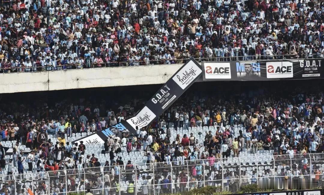 梅西在印度彻底翻车, 别把球迷的热爱当韭菜割! 当地时间12月13日,梅西开启2025年印度巡演,首站加尔各答盐湖体育场挤满了8万多名球迷!不少球迷花5000卢比到2.5万卢比(约390-1947元人民币)、甚至一个月工资买票,想亲眼见见偶像,结果梅西被一堆官员、嘉宾围着要合影,球迷根本看不清他,原宣传的45分钟出场时间也缩水到仅20多分钟,绕场都没走完就溜了。 这下球迷彻底炸锅,当场怒砸座椅、扔水瓶,还冲进场拆横幅、毁临时帐篷和音响设备,初步估计损失超过170万元(2000万卢比)。最后当地政府不得不出来道歉、并拘留组织者,主办方承诺退款,这场本该燃爆的见面会彻底变成大型翻车现场! 愤怒的球迷为了表达不满,当场砸座椅、扔水瓶,还冲进场内抗议,当地政府道歉并拘留了组织者,主办方也承诺退款,这场本该圆满的球迷见面会彻底变成了闹剧。说到底,这哪是球迷见面会,分明是割韭菜的骗局! 球星梅西 C罗梅西 msn梅西