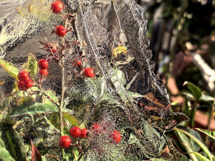 橙友“里尔”今早发现,5楼屋顶上的积水结冰了: