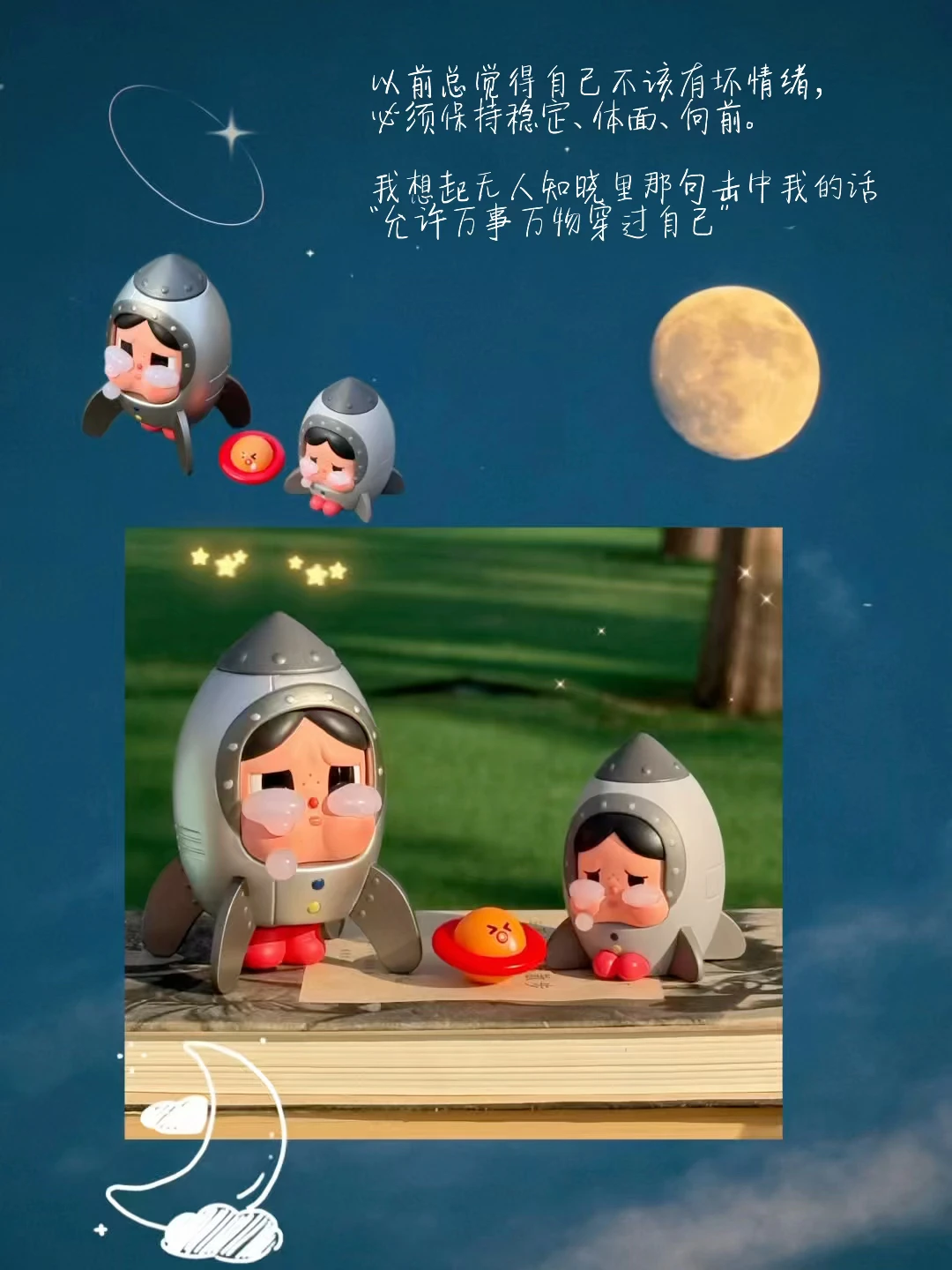 我不再抵抗了,就像CRYBABY,它从不掩饰眼泪,只是静静坐在那儿,接住所有不安与脆弱。可以流泪,可以停顿,可以消失那么一会儿。