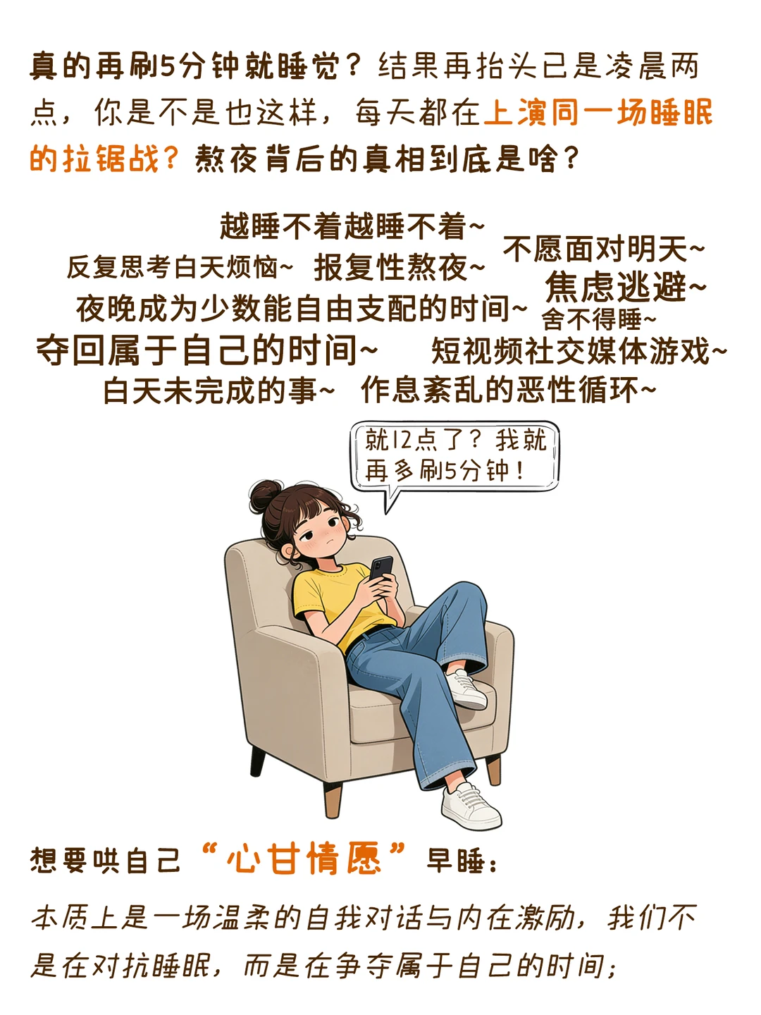 白天属于工作、家庭、社交? 只有半夜屏幕的光,才照得见真实的自己? “我又熬夜了”; 这句话是不是已经成了你的每日懊恼? 明知道要早睡,却总在半夜报复性清醒? 其实不是不想睡,只是舍不得; 但这种“自由”的代价太大了; 第二天往往困成行尸走肉,皮肤变差,情绪易燃... ... 来试试这个哄自己心甘情愿早睡的小方法吧; 不靠意志力硬扛,用系统方法让早睡自然发生;