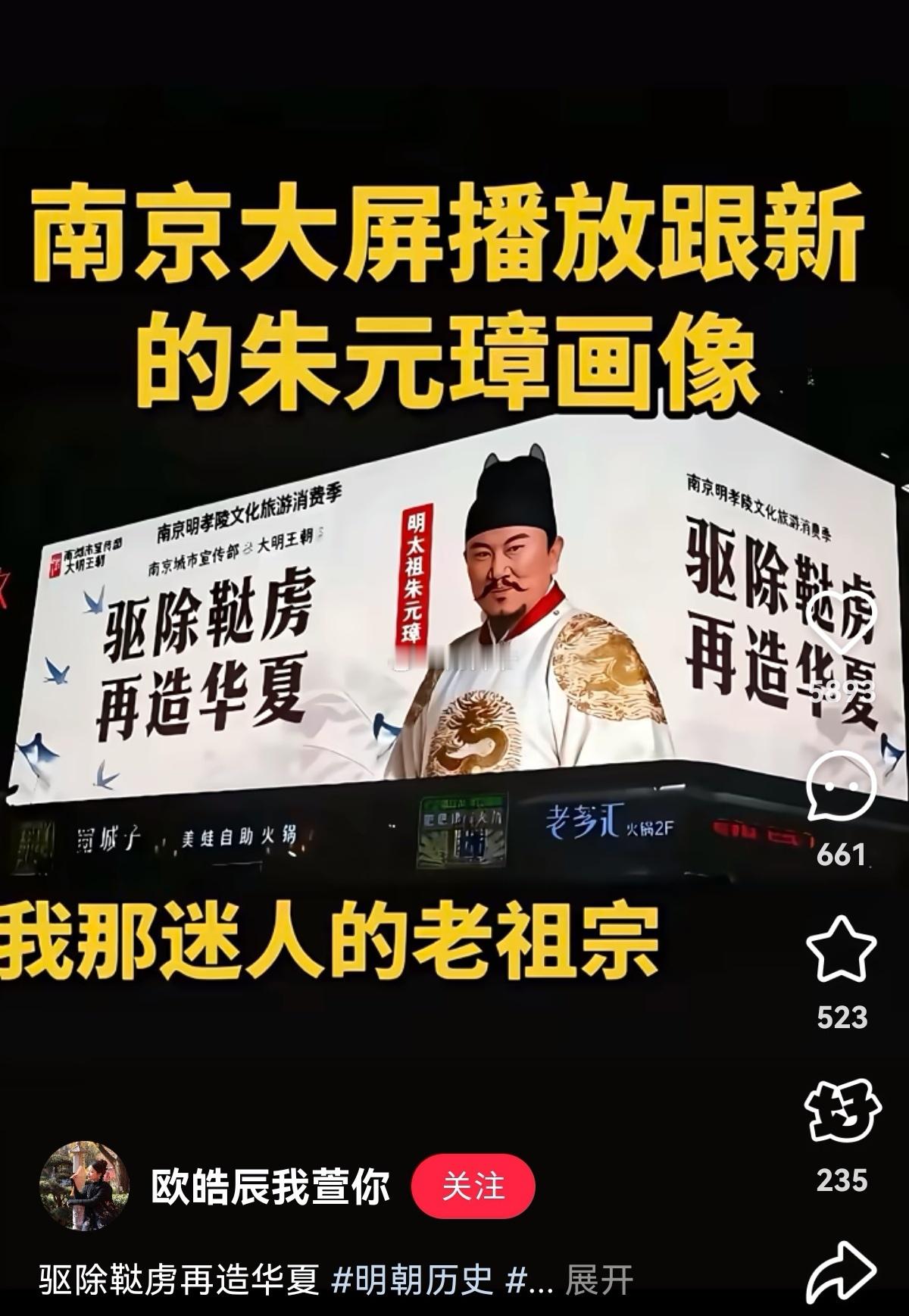 这两天,南京的这块大屏幕火了!驱除鞑虏,再造华夏!
