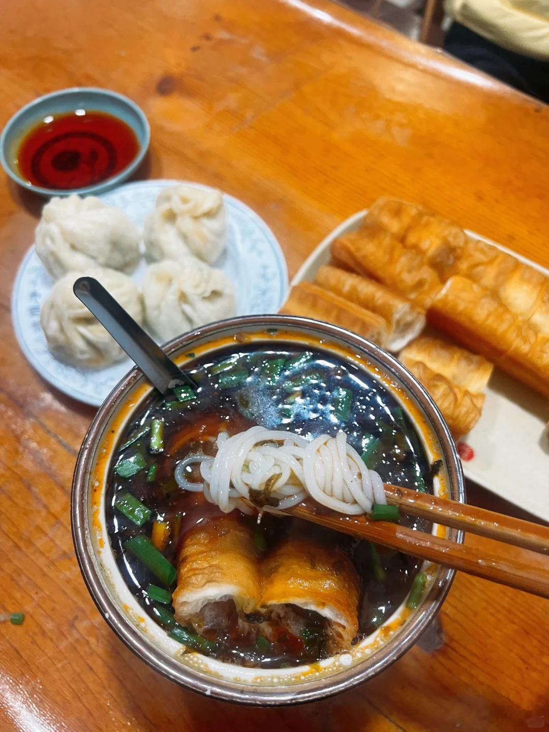 四川小县城 南充南部县越是小地方,好吃的东西越多,毕竟大多数年轻人都离乡了,能留下来的馆子,一定是经住了当地人考验的。肥肠干饭:肥肠炖的很入味,配上酸菜干饭真的要比平时多干一碗饭!连本地人都在排队,而且价格实惠!锅盔凉粉:发明这种吃法的简直就是个天才,一整个锅盔配上凉粉又香又脆,多吃几口也不会很腻的!油茶:个人觉得比豆腐脑好吃,油茶料很足,里面有酥脆的馓子、葱花、花生,真的是喝完一勺根本停不下来!陈氏香鹅掌:端上桌后焖几分钟就可以吃了,鸭掌和翅中应该都是提前压过的,很软糯 一进嘴就脱骨了 也很入味!搭配的洋葱 花生碎 土豆都好吃二中火锅粉:开了30年,是很多人童年的回忆,南部县的人基本都是吃过的,现在要11块钱一碗,味道没变,吃下来嘴巴都烫的非红,人挤人的吃,很有辨识度周凉粉:吃了南部的周凉粉,宣布川北凉粉yyds,看似简单的红油和蒜泥,实际上却是风味十足,一口下去Q弹香辣文包子(现叫高五分):是个多年老店,包子8块钱一笼,老面有韧劲、肉馅细腻,一定要蘸红油,一口一个,配上海带汤,好吃。火盆小香猪:份量足,墙裂推荐小香猪和五花肉,用料特别扎实,套餐性价比高,味碟只有简单的黄豆面和辣椒面已经很对味儿四川美食