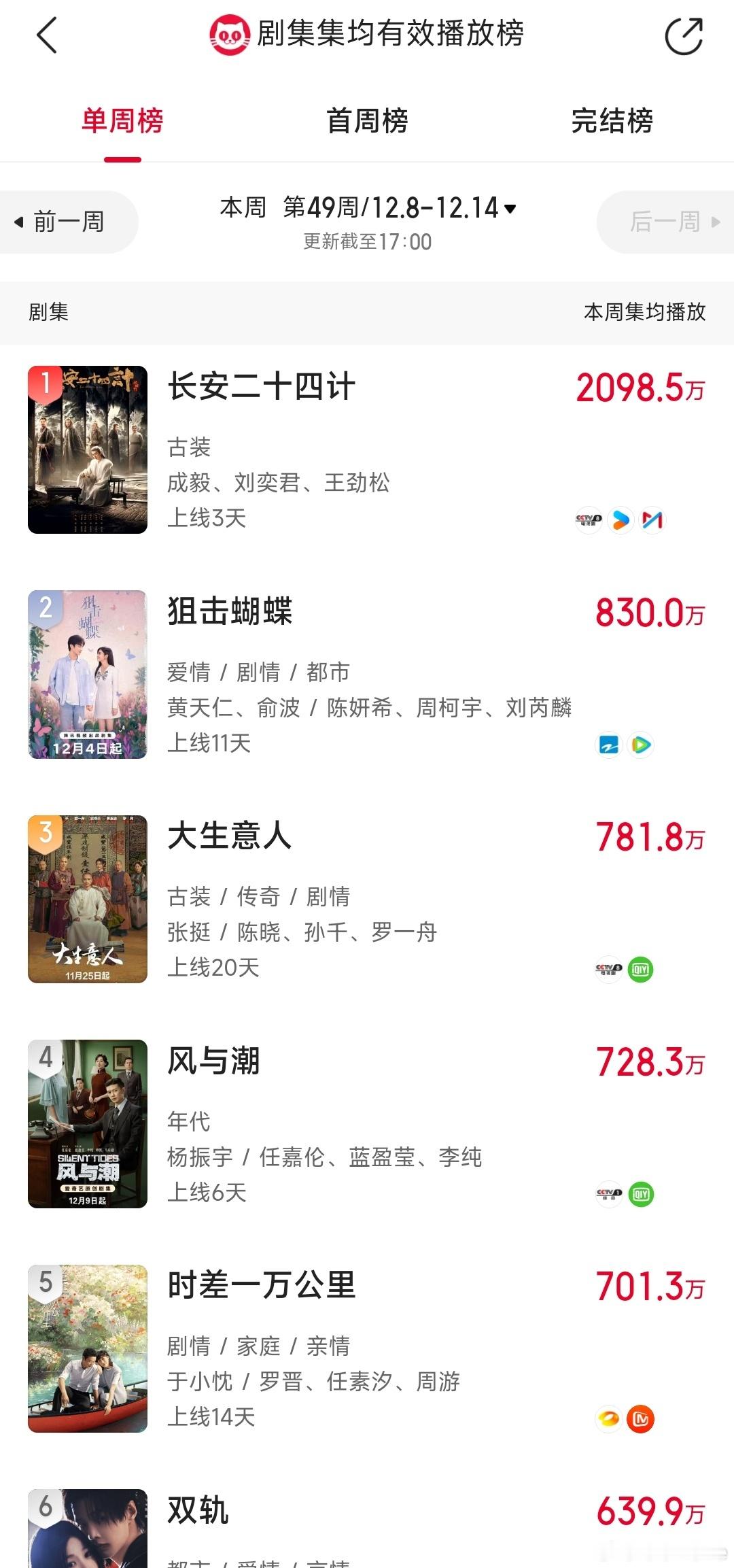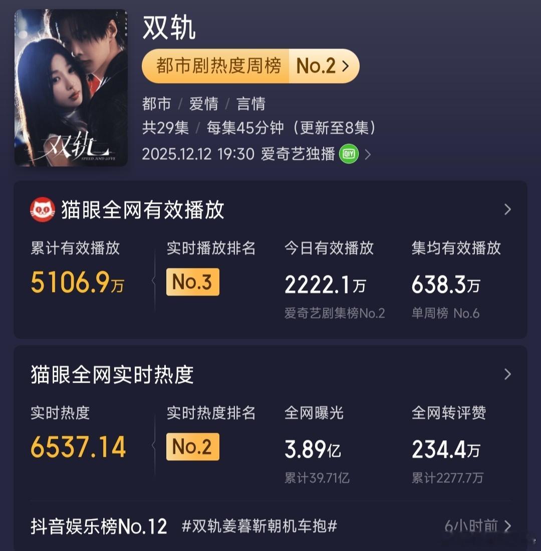 双轨云合超长安二十四计别带《长安二十四计》,谢淮安刀人刀的正起劲儿。《长安二十四计》有效播放破亿,是《双轨》的两倍,集均有效播放是3倍,全网转赞评是两倍,全网累计曝光45.19亿,多5.48亿,全网热度更是第一。成毅单抗,天花板的风景很美,无需这种刻意引导的热搜对比,再说了一个是都市现偶,一个是古装权谋,完全不同的两个赛道,《长安二十四计》也不靠cp,纯硬实力一枝独秀,今晚继续看被反转,给每个人订制亖法。长安二十四计大眼杯表彰小会