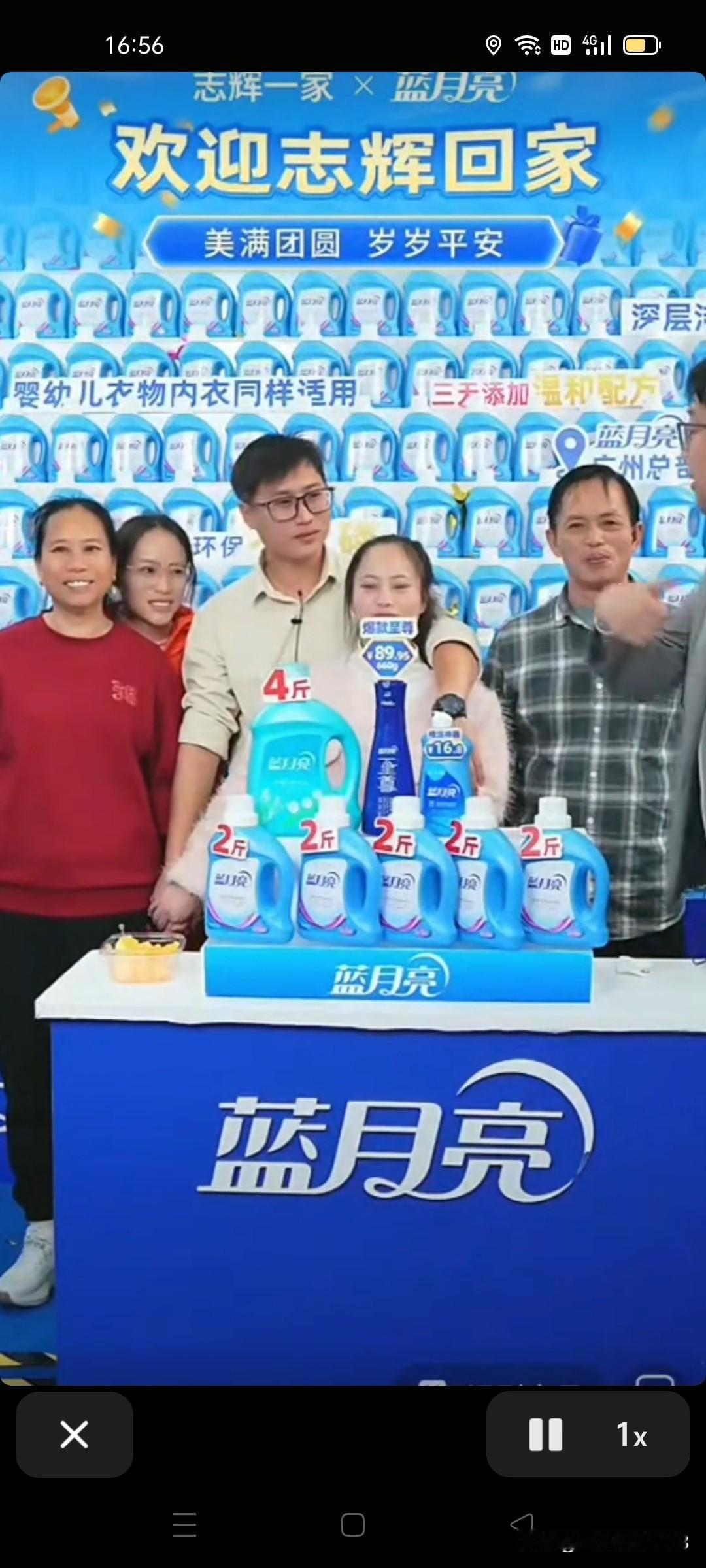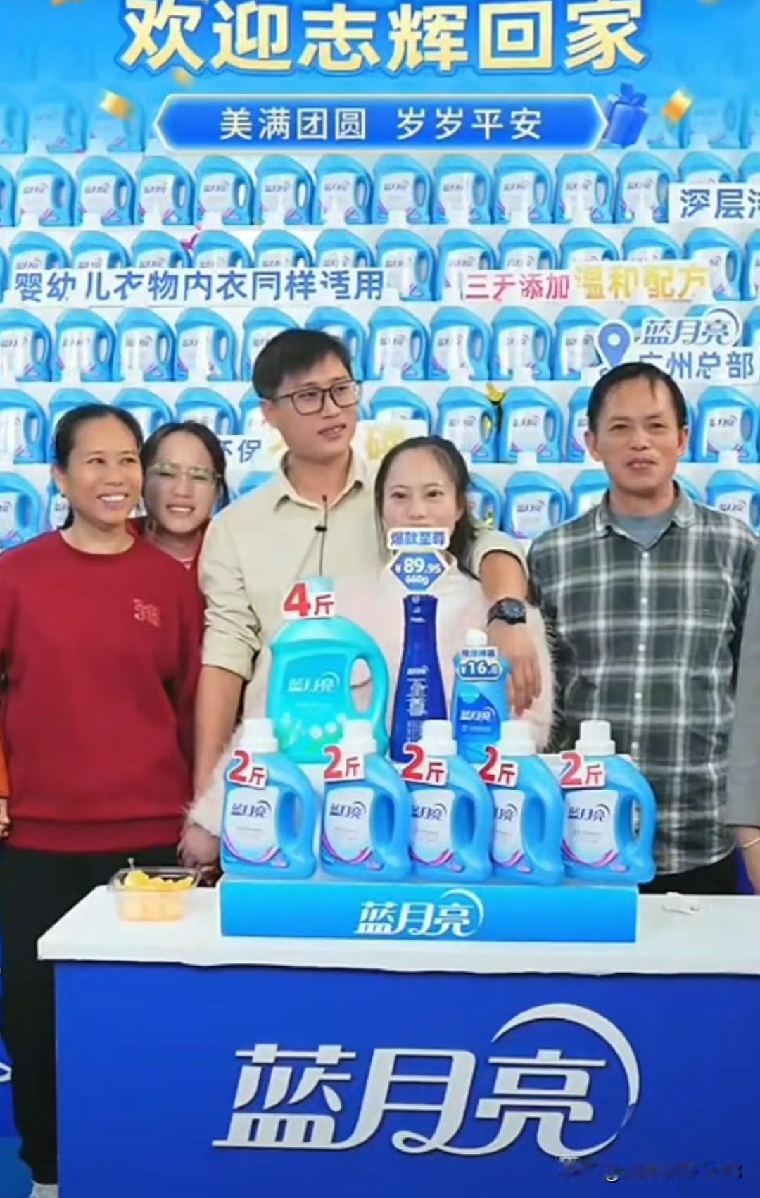 梁志辉爸爸今天带货蓝月亮。地址是在广东带货,网友猜测梁志辉这次肯定要给爸爸助力。果不其然,梁志辉和爸爸,姐姐,妹妹一家人汇合在一起直播带货。 这次直播带货里面主播真的很给力,很会调动气氛,也问了很多网友们都开都很关心的问题。梁志辉因为自己直播了几次,很幽默聊天,评论区也是机智回答问题。所以直播间都称他“辉总”或者“牛马辉”。 在直播间里爸爸想起了三十年来寻找儿子经历,不自觉的哭了。梁志辉亲自给爸爸擦眼泪。和姐姐妹妹一起直播的时候,很自然的把手搭在姐姐的身上。虽然30年没在一起生活,但是还是很亲切,这就是所谓的血缘关系。