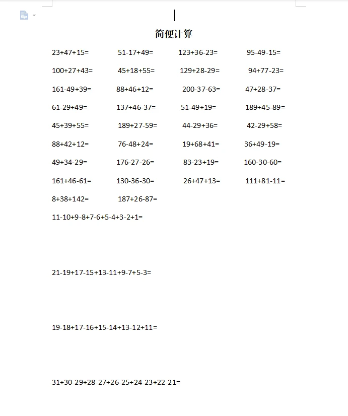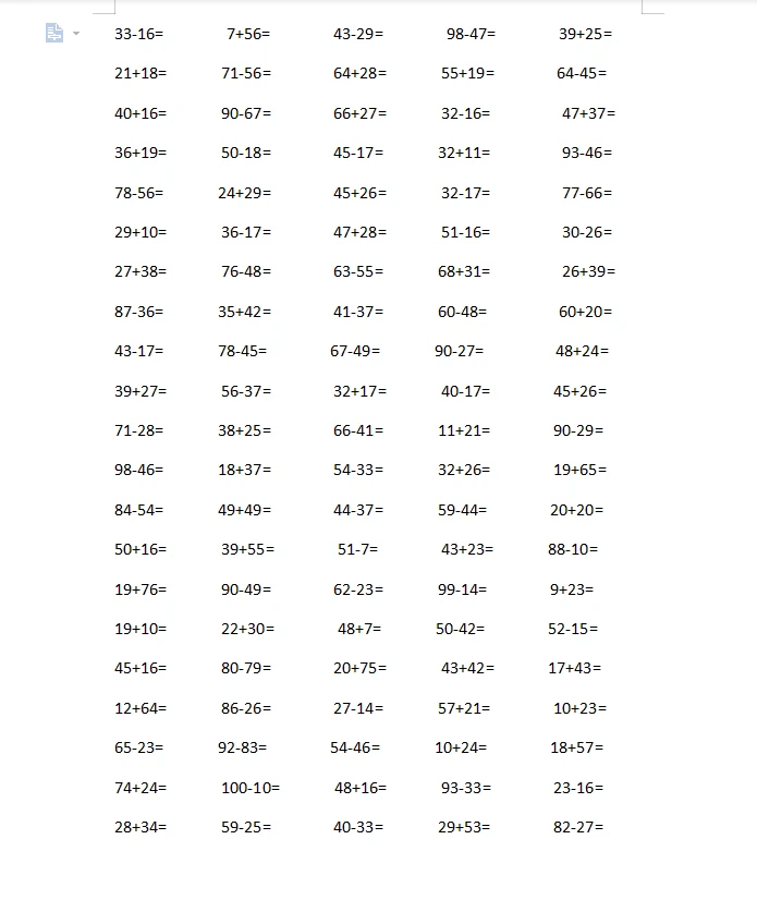 100以内加减法二年级下册