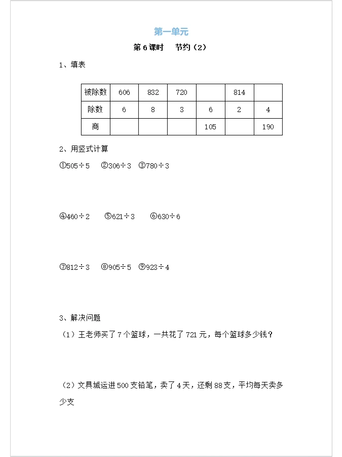 《节约》三年级数学下册
