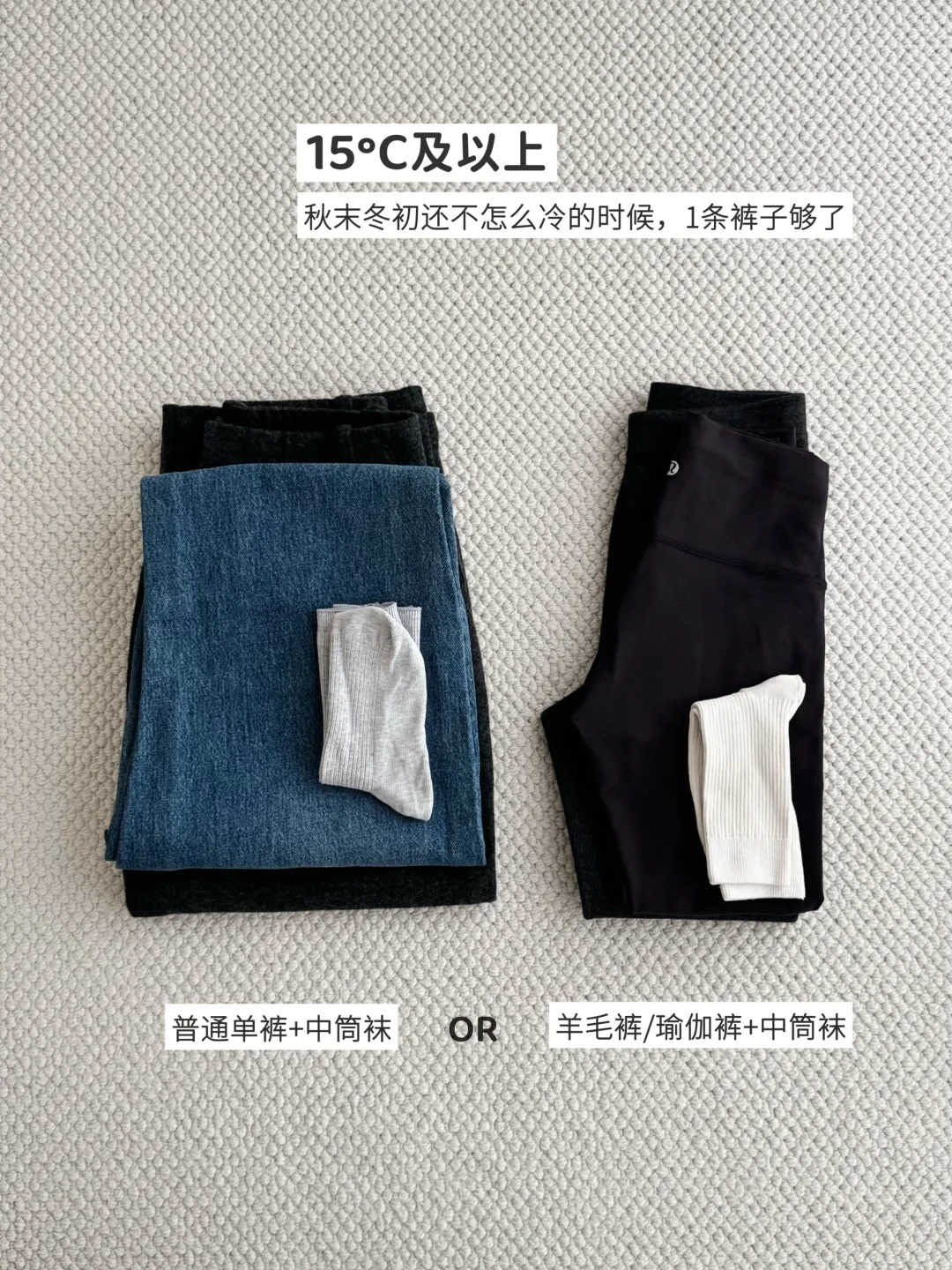 15°C(深秋):普通单裤/打底裤+中筒袜