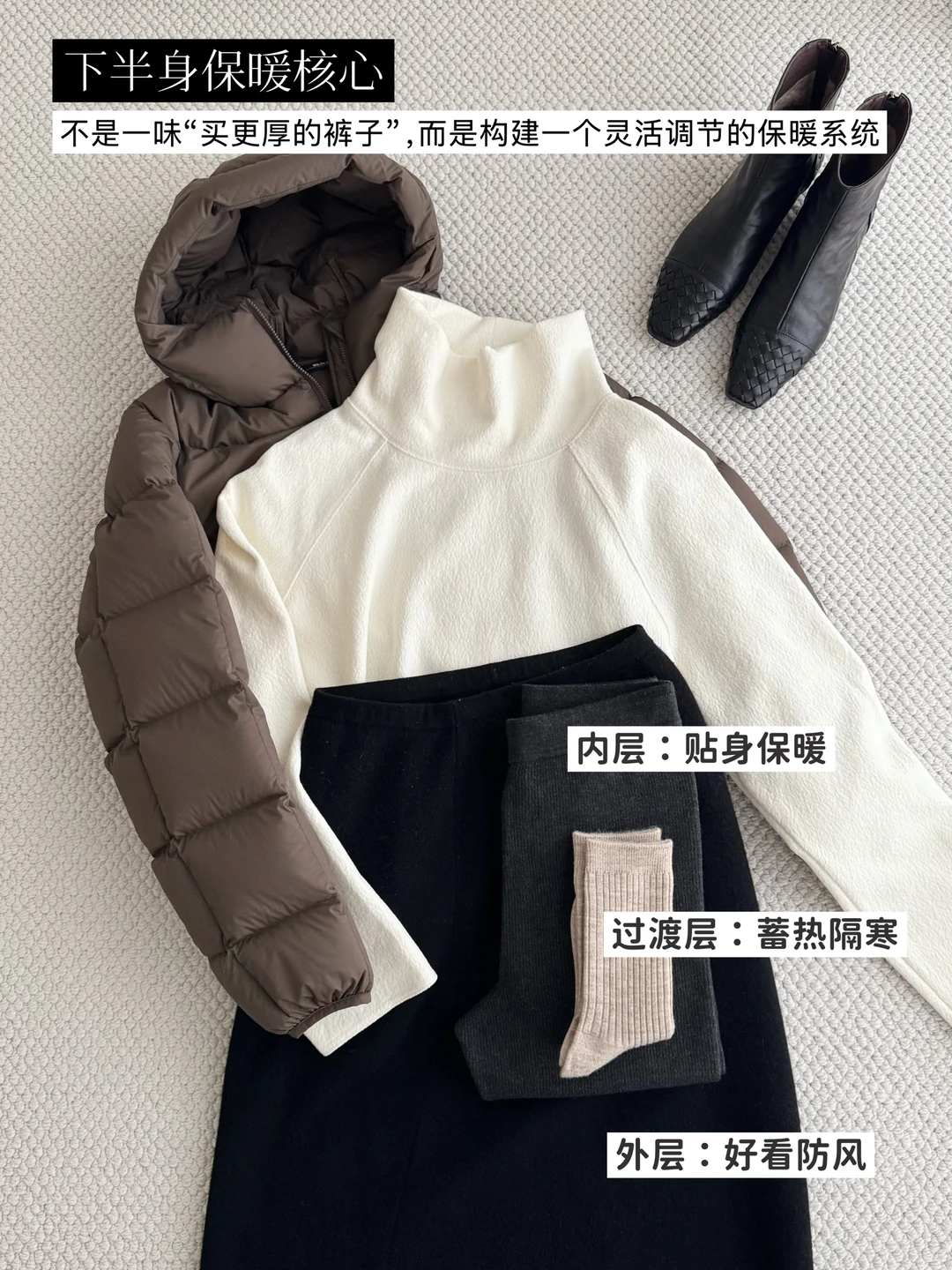 天气越来越冷,最近常有姐妹问下半身怎么穿?索性整理一篇。其实以前也很爱乱买,这几年慢慢摸索出一套【下半身保暖】方法,我发现真正精简又高效的核心,不是一味的“买更厚的裤子”,而是构建一个灵活调节的保暖系统。