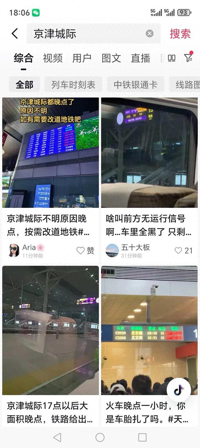 津云记者综合网友提供的信息,包括C2582、C2256、C2022等十余趟往返于京津的城际列车均出现了延误情况,晚点几分钟至一个半小时不等。