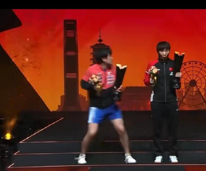 夺冠后丑态百出,一副小丑模样,没有一点大样,这也是很多人不喜欢他的原因。尤其是和站在旁边的王曼昱一对比。更是让人无语。 昨晚的WTT香港总决赛男女单冠军颁奖仪式上,张本智和出来后,就有一副小人得志的模样,先是把鲜花放在一旁,看到王曼昱手了里拿着鲜花后,又赶紧把鲜花从地面上捡了起来拿在手里。随后烟花放出来后,张本智和的表现可谓是让人厌恶,肢体动作极不协调和夸张。。随后朝后又看了一眼。不知道是真不知道放烟花还是装的不知道。而站在旁边的王曼昱始终一个笔挺的姿势站着。很从容和淡定。这样一对比,高低立判。