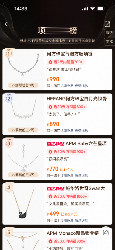 像HEFANG这样通过淘宝出海的品牌不在少数,如中式珠宝品牌庆祥泰、布达拉宫旗舰店等天猫商家,今年双11在淘宝出海的成交增长超20%。据了解,目前已有超六成的天猫珠宝饰品商家通过淘宝出海,将中国的产品带给海外消费者。在国际珠宝市场,也有越来越多中国品牌的身影。