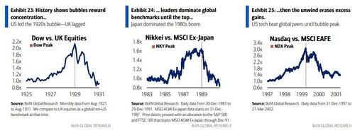 此外,在咆哮的20年代,泡沫中心往往跑赢全球市场,这也解释了为什么2025年兴起的“美国例外主义见顶”主题与AI泡沫的进一步发展相矛盾。