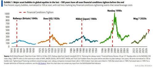 美银总结称,虽然时机判断最为困难,但AI泡沫的最终破裂似乎不可避免。该行预测紧缩的金融条件将是最大风险,这是所有主要泡沫破裂前的共同特征。波动性将保持高位,市场仍将脆弱,而围绕AI前景的辩论将继续推高不确定性和不稳定性。