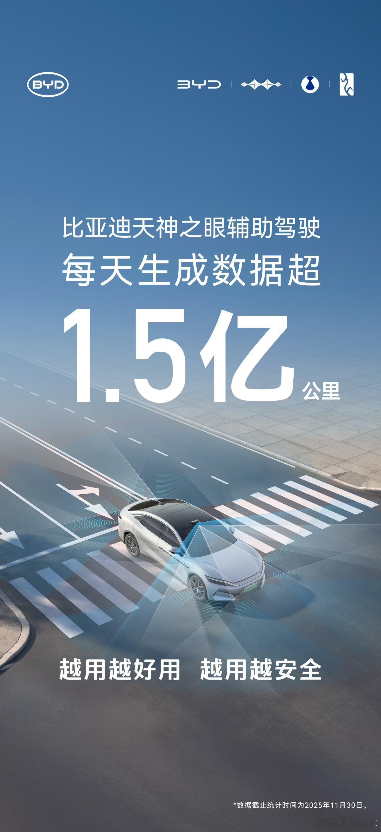 11月比亚迪辅助驾驶车型销售311267辆天神之眼车型累销超230万辆每天生成辅助驾驶数据突破1.5亿公里比亚迪天神之眼全国都好开